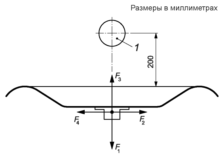 F15, которые должны быть приложены к испытываемой полукруглой направляющей, а также положение точки измерения.