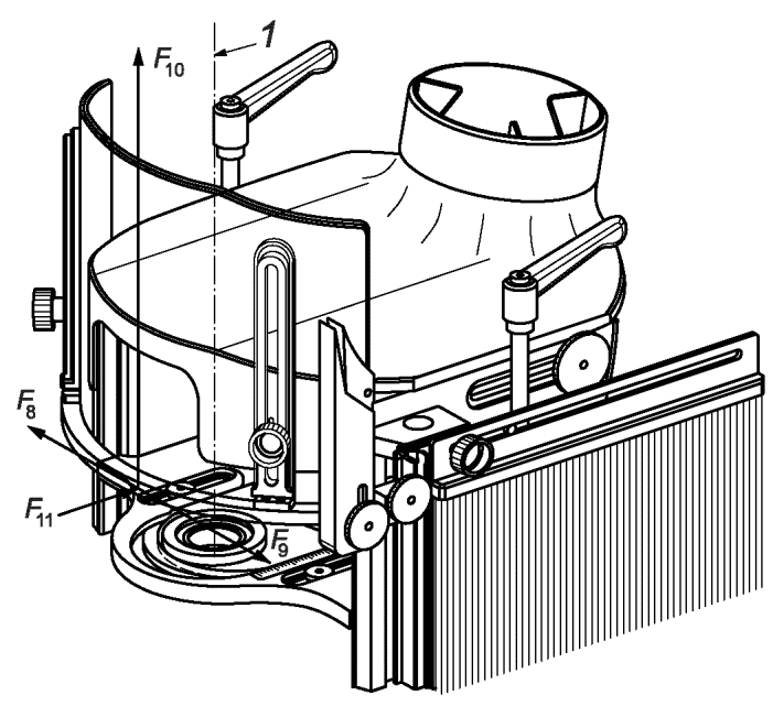 1 - ось оправки; F8 - F11 - усилия, прилагаемые