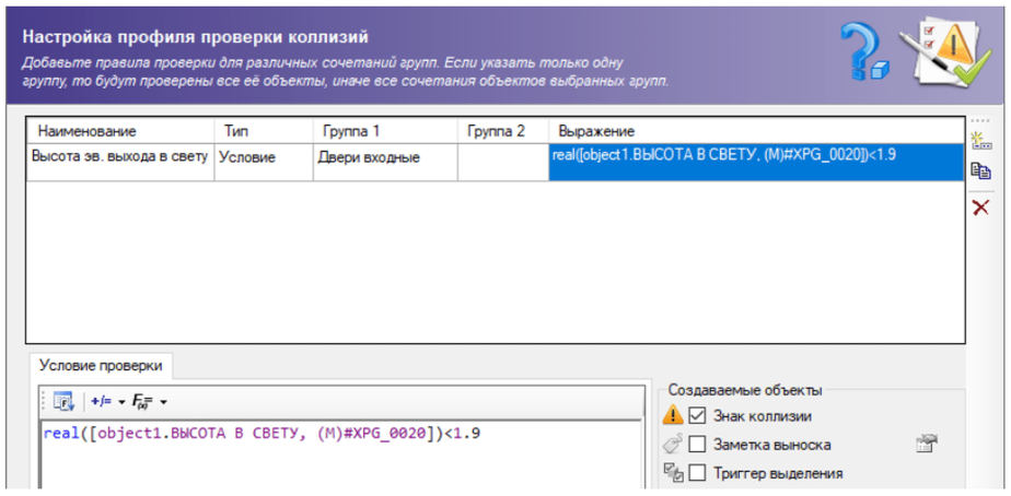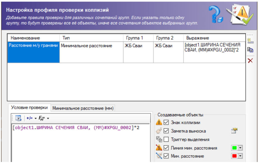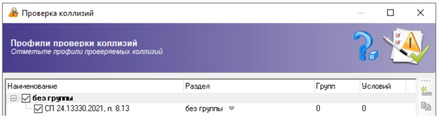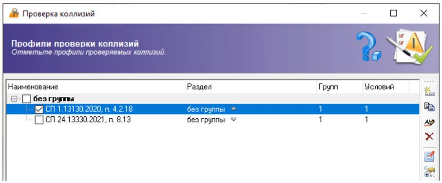 Рисунок Б.4.3.1 - Создание профиля проверки коллизий