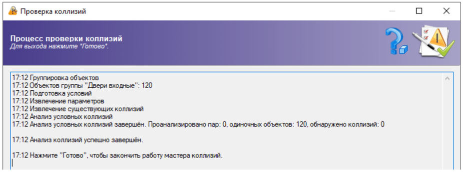 Рисунок Б.4.3.5 - Протокол проверки коллизий