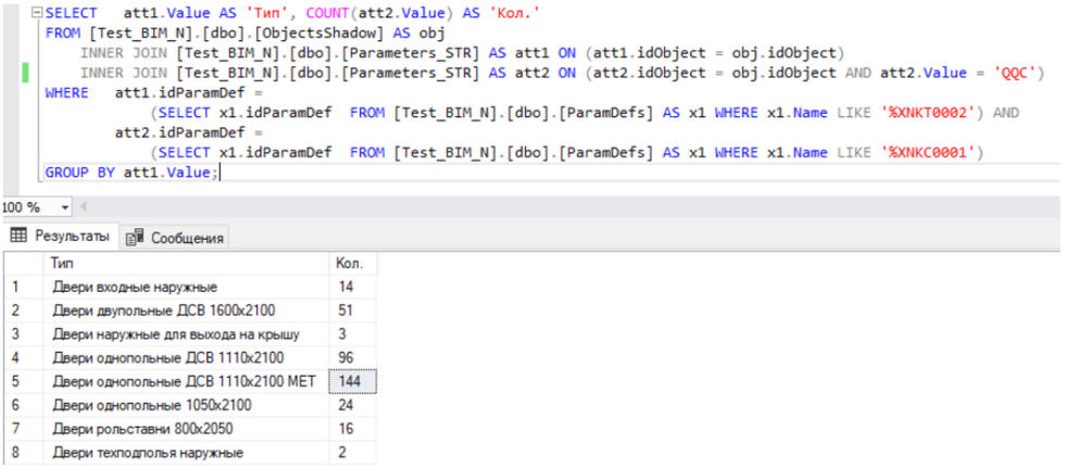 2 | Высота эвакуационных выходов в свету должна быть, как правило, не менее 1,9 м. | Получить выборку дверей (из квартир), для которых значение атрибута "Высота в свету, (м)#XPG_0020" меньше 1,9 (м). |