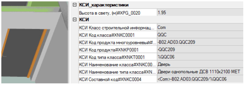 Рисунок Б.4.2.1 - Атрибуты элемента "Дверь", согласно КСИ
