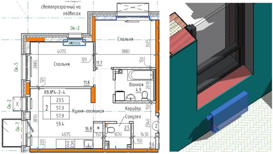 Для осуществления подобных проверок, помимо имеющихся значений атрибутивной информации, при помощи методов геометрического решателя <25> ПО вычисляются дополнительные параметры объектов, участвующие в реализации сценариев нормативных проверок, например: расстояние между поверхностями объектов, нахождение точек/линий пересечений и прочее.