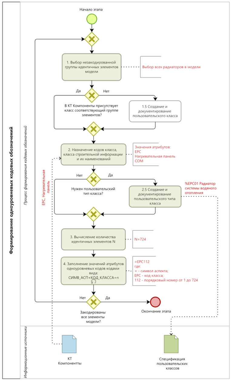 <1> Под процессом "ручного" кодирования подразумевается кодирование элементов ЦИМ без применения специализированных программных решений (программных расширений, плагинов, пользовательских скриптов и прочее), позволяющих формировать и присваивать элементам модели кодовые обозначения автоматизированным или полуавтоматизированными способами.
