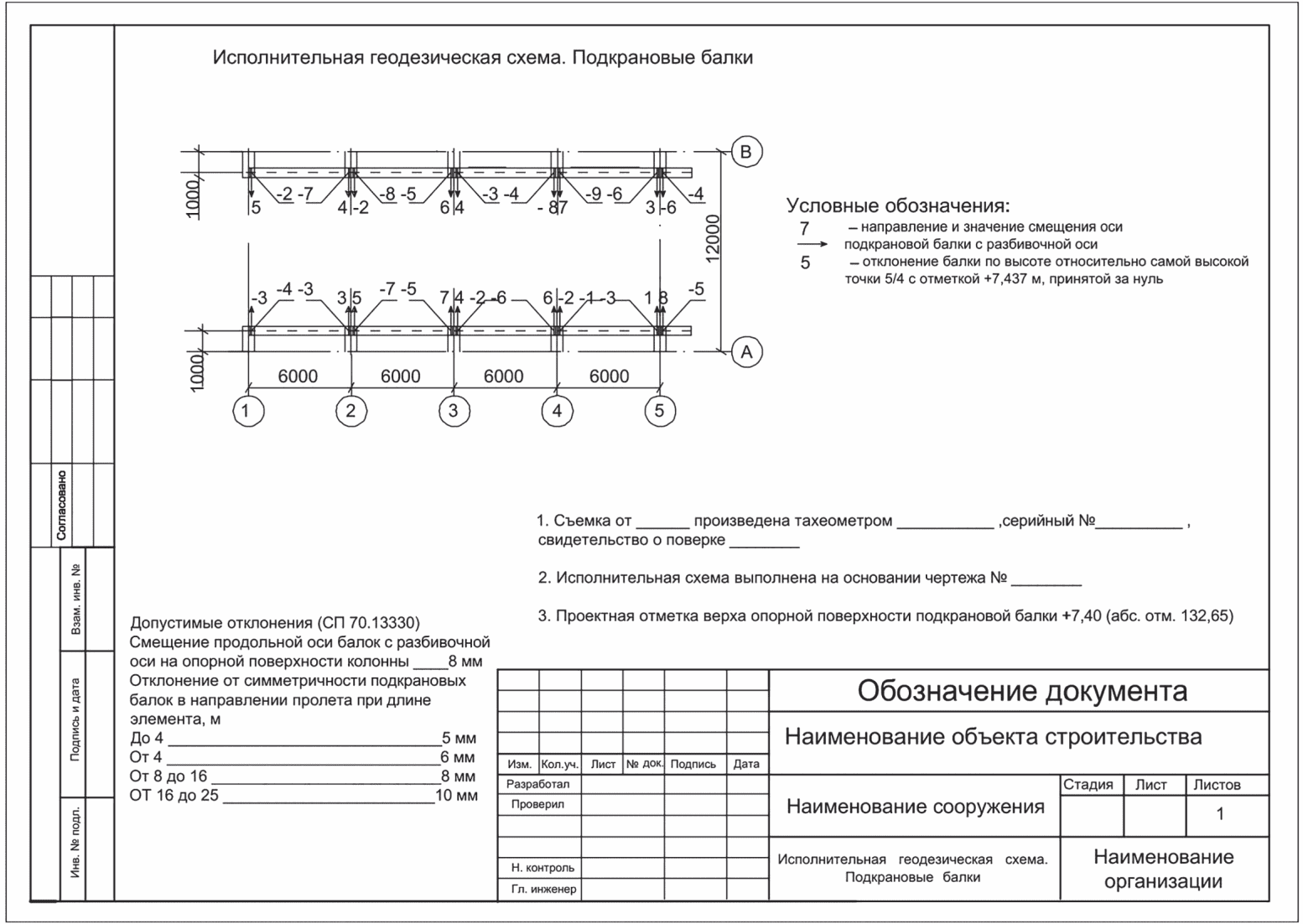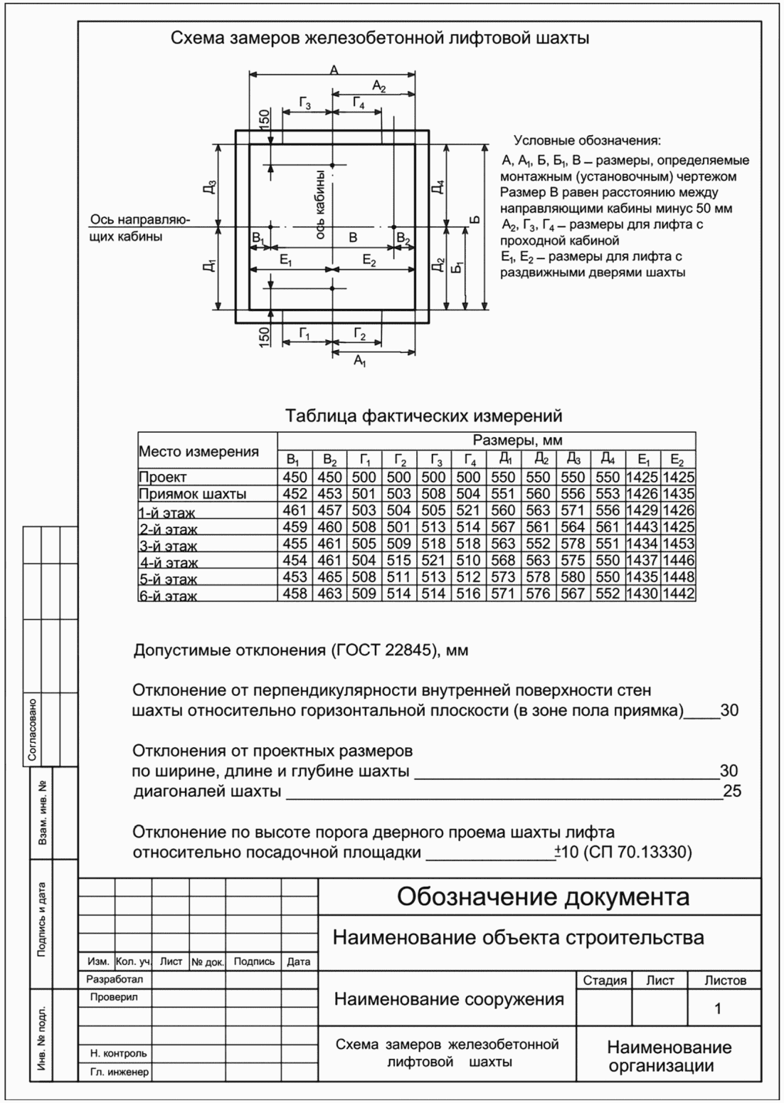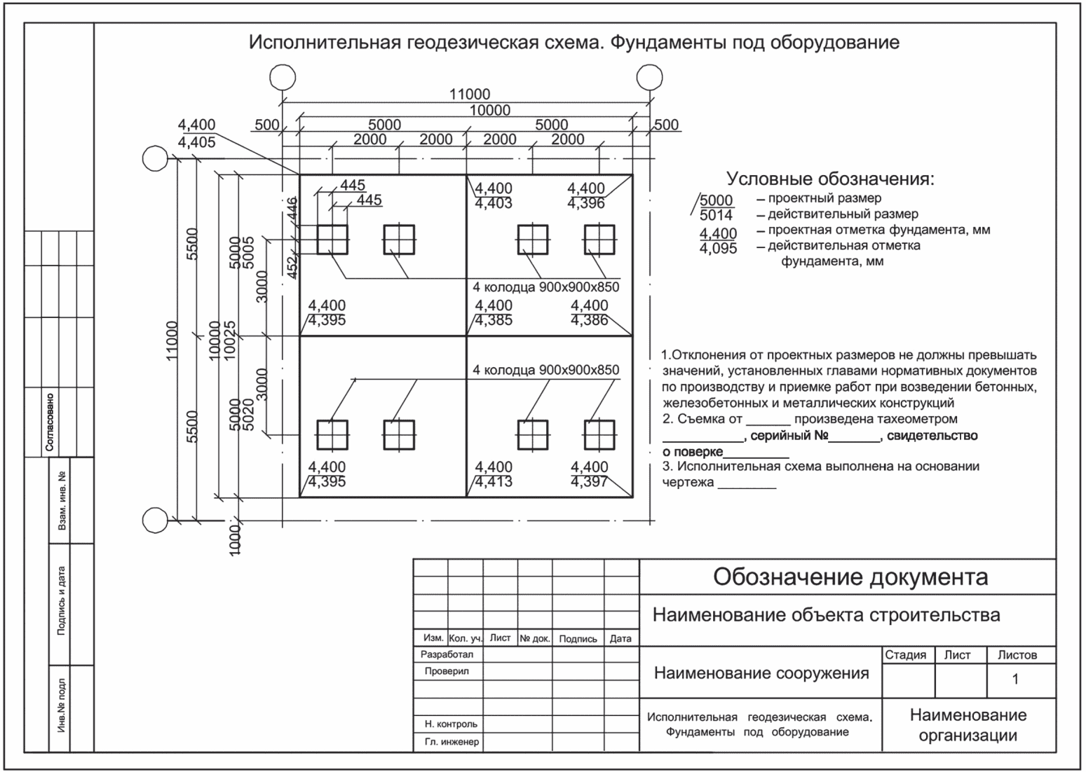 - проектные и действительные отметки контролируемых параметров конструкций аналогично способу, используемому в проектной документации;