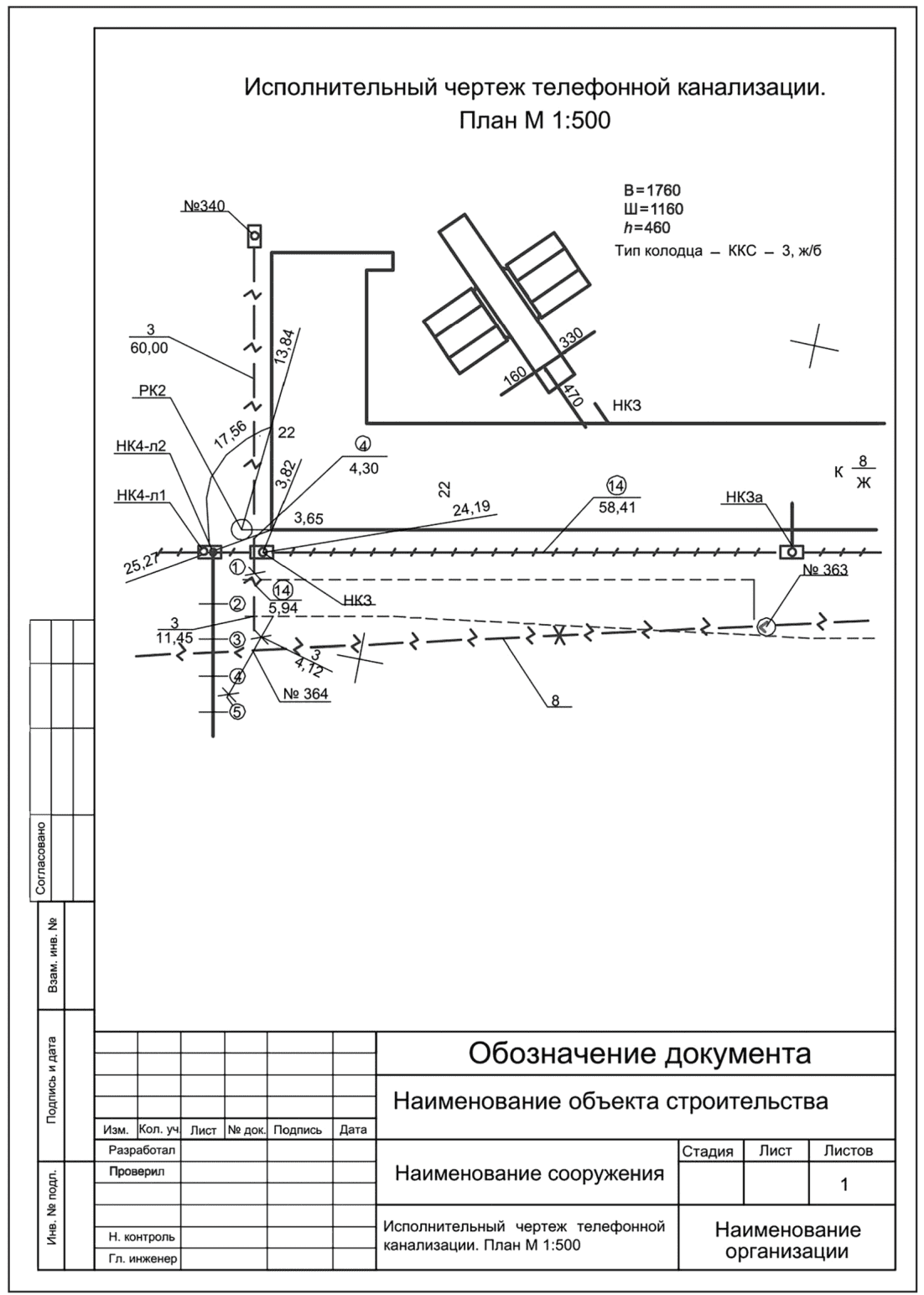 Г.1.5 На исполнительном чертеже должны быть приведены данные о назначении сети, количестве, материале и диаметре труб, величине напряжения и марке кабелей, давлении газа.