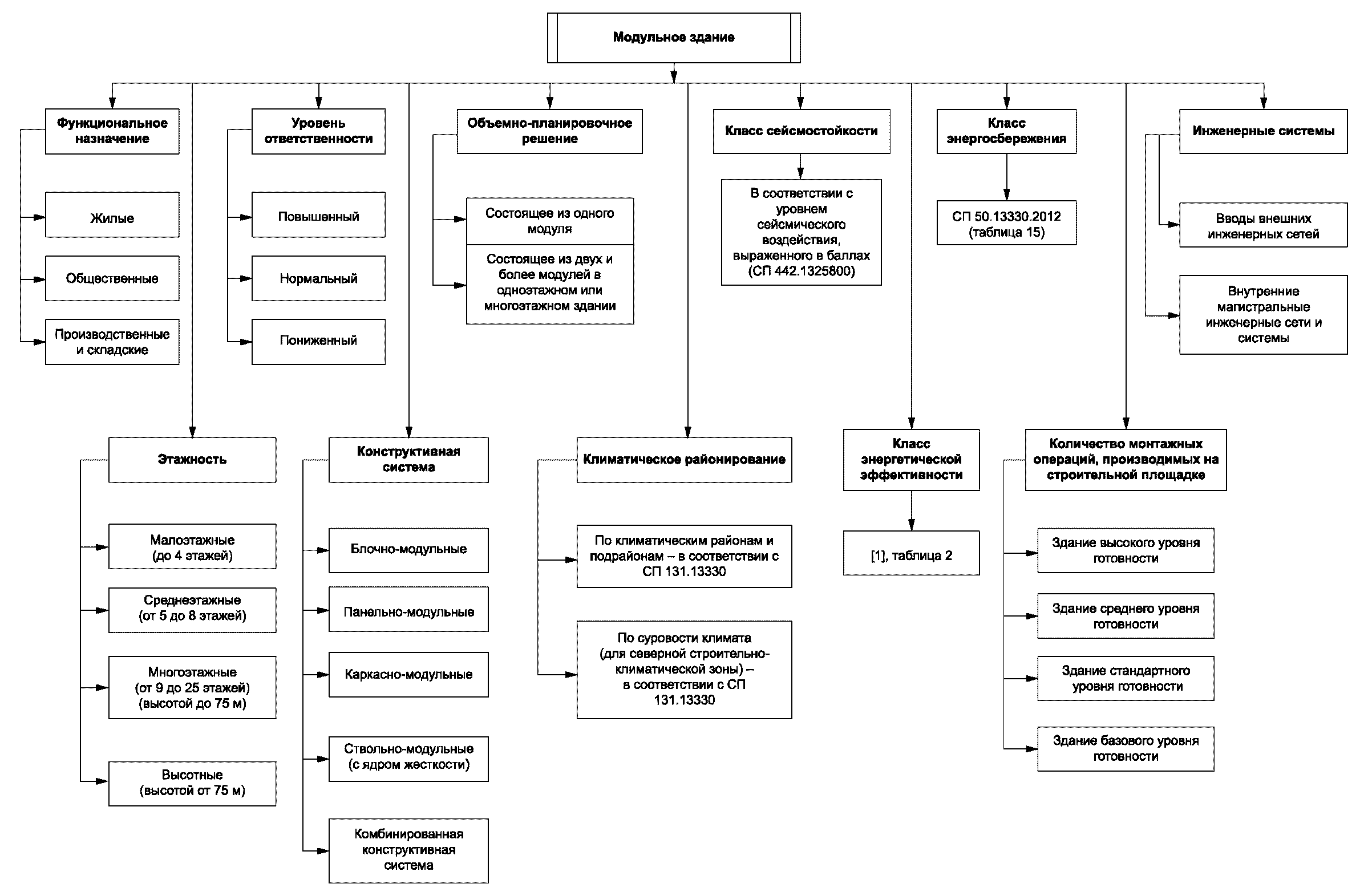 4.1 Модульные здания классифицируют по следующим признакам: