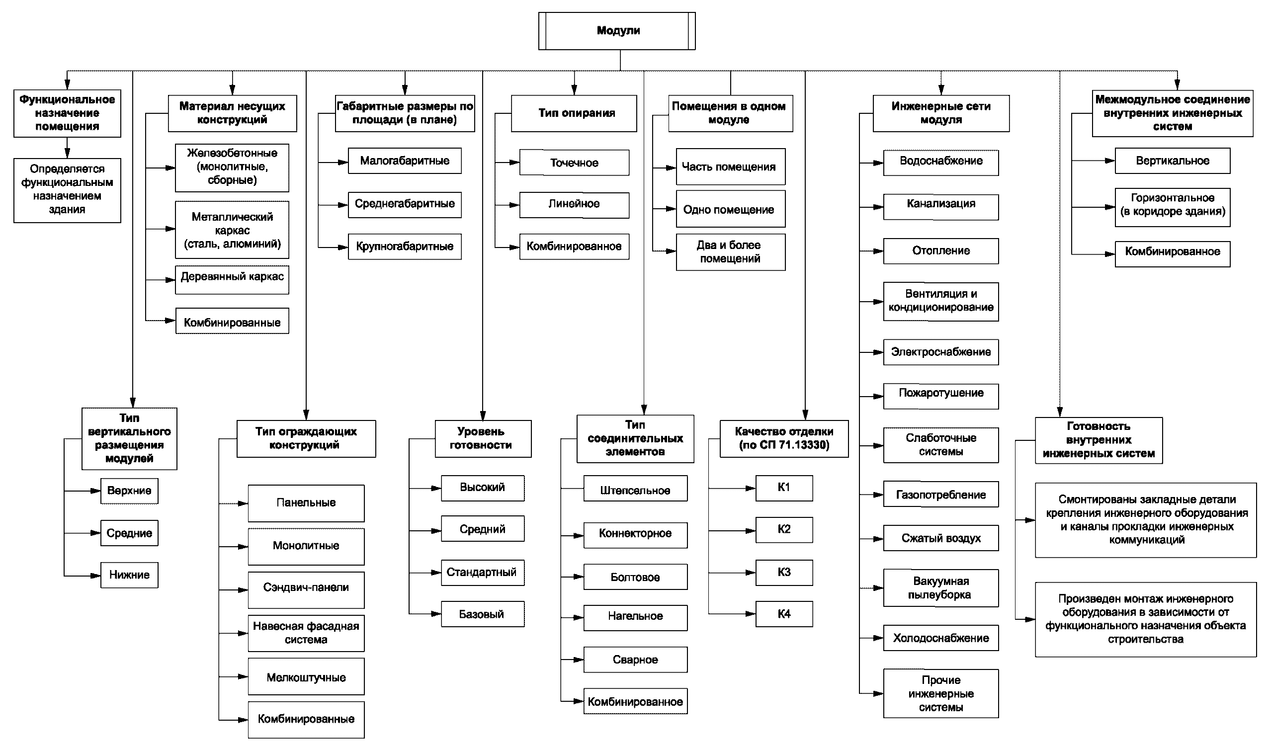 БЛОК-СХЕМА КЛАССИФИКАЦИИ МОДУЛЬНЫХ ЗДАНИЙ И МОДУЛЕЙ