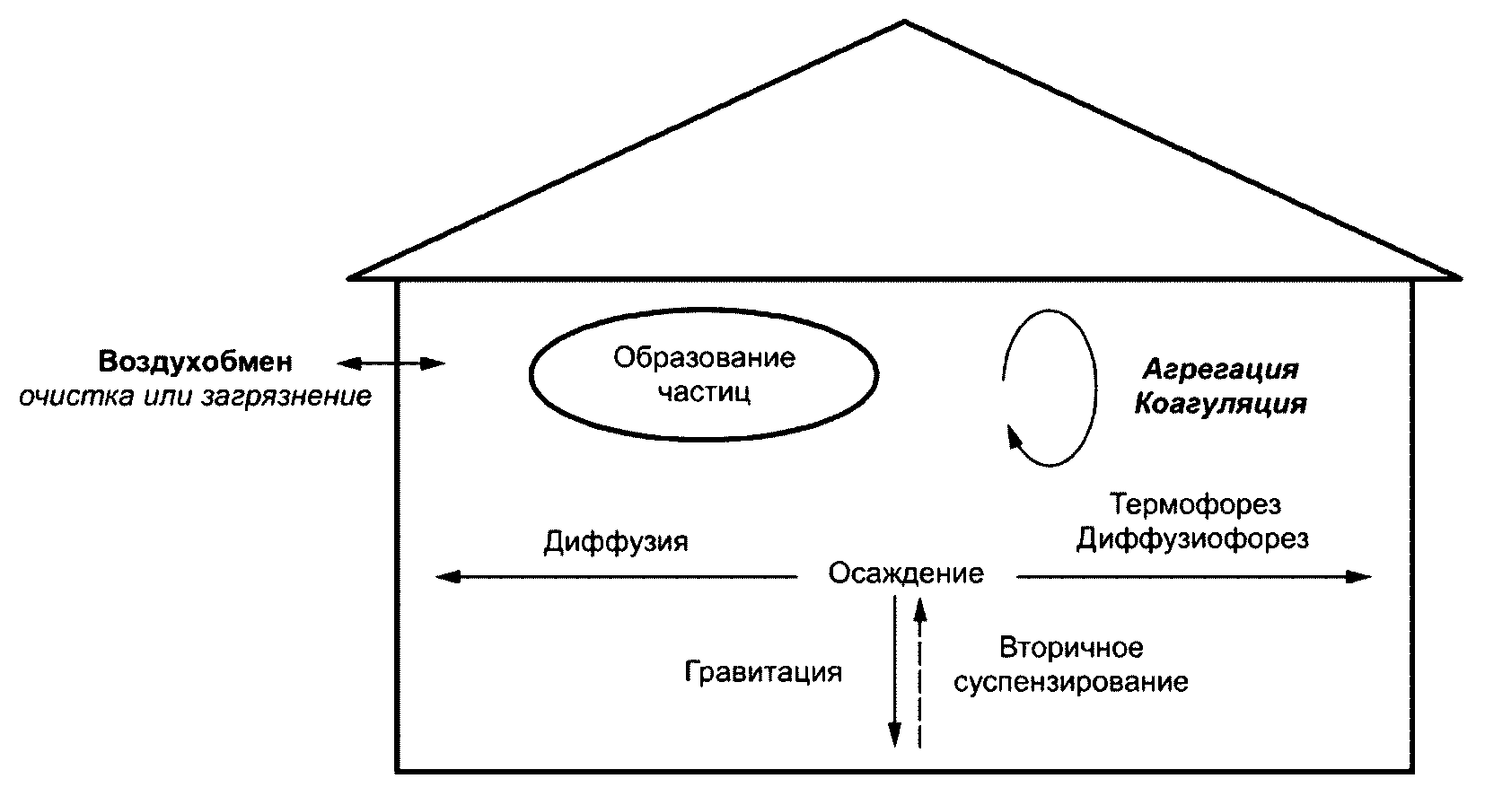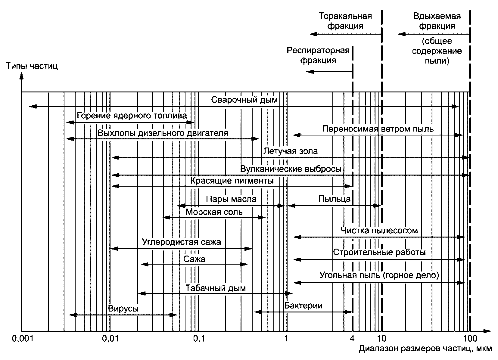 Примечание - Крупнодисперсные частицы образуются обычно при механическом истирании и взвихривании осевших частиц и напольной пыли.
