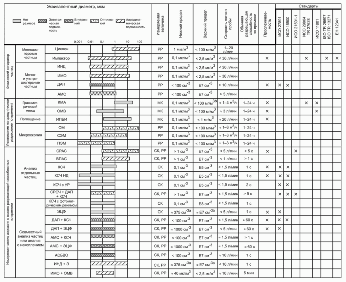В стандартах серии ИСО 16000 приведены рекомендации в отношении разных фракций взвешенных частиц и связанных с ними методов измерений.