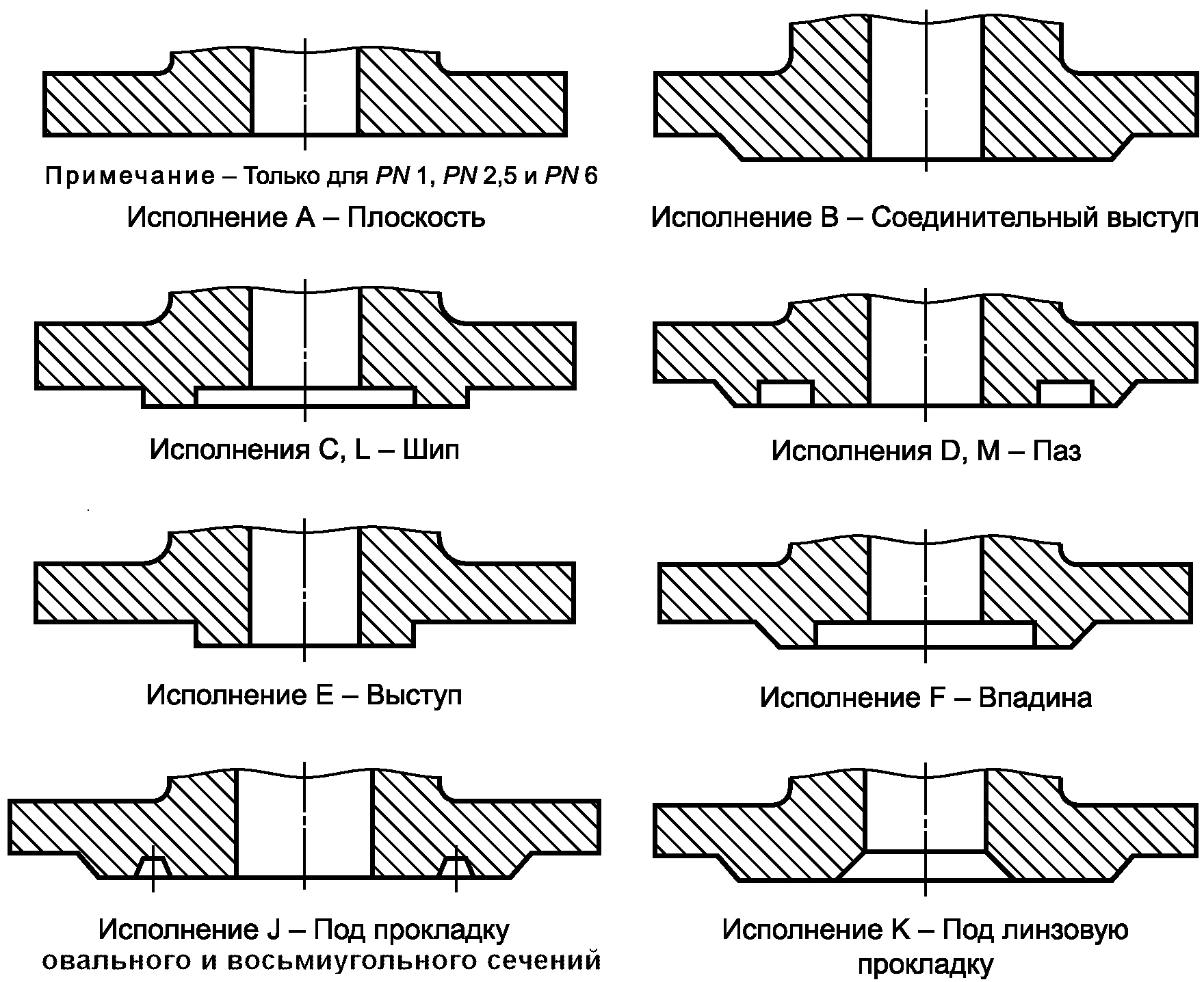 ![]() Фланец под линзовую прокладку | Исполнение 6 | Исполнение K |