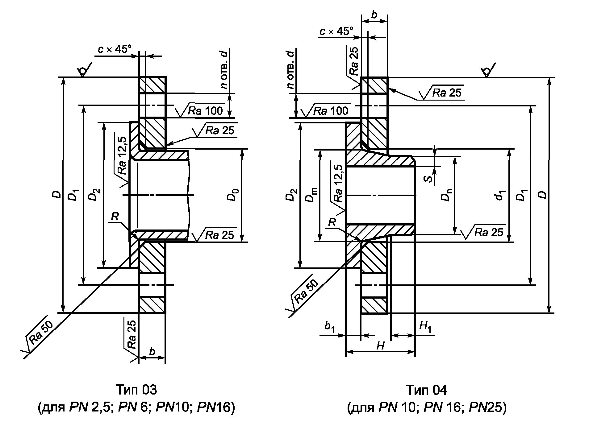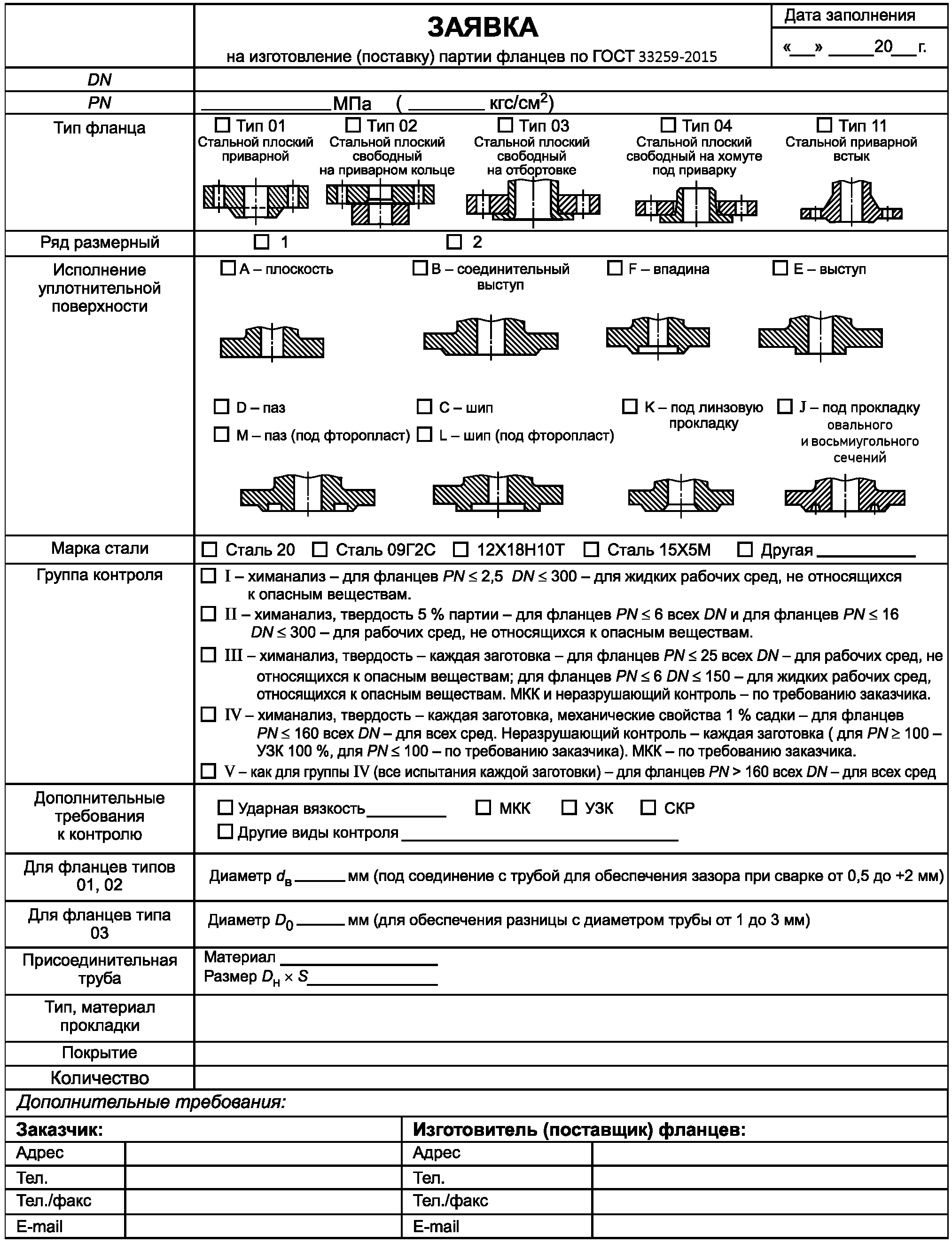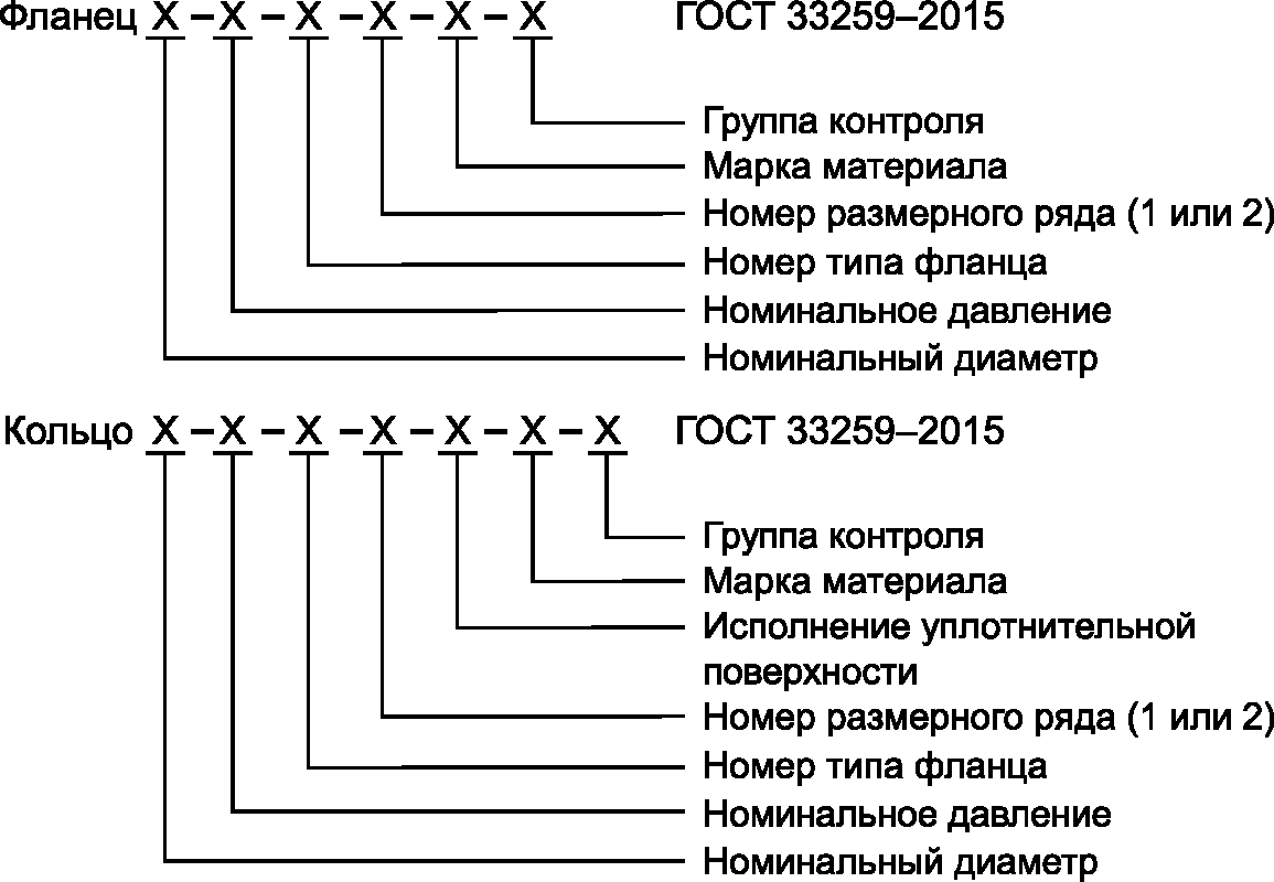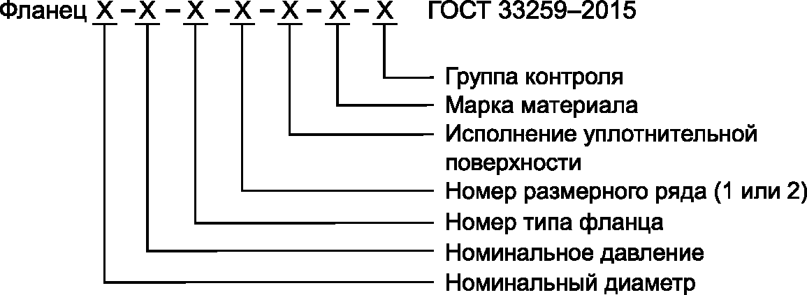 Примечание - В обозначении фланцев по ГОСТ 33259 материал фланца Ст 25 и группы контроля III и IV приведены только для примера. | |