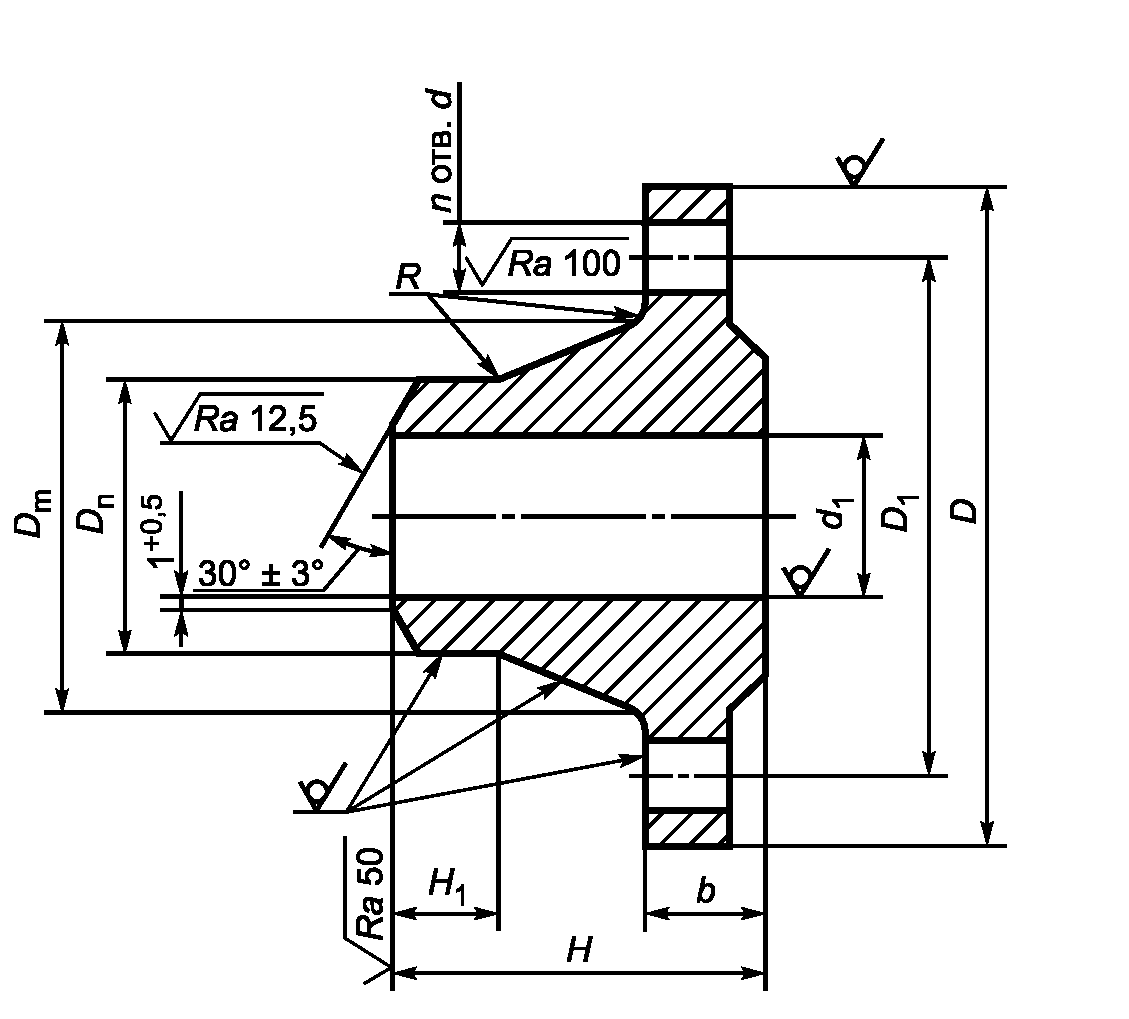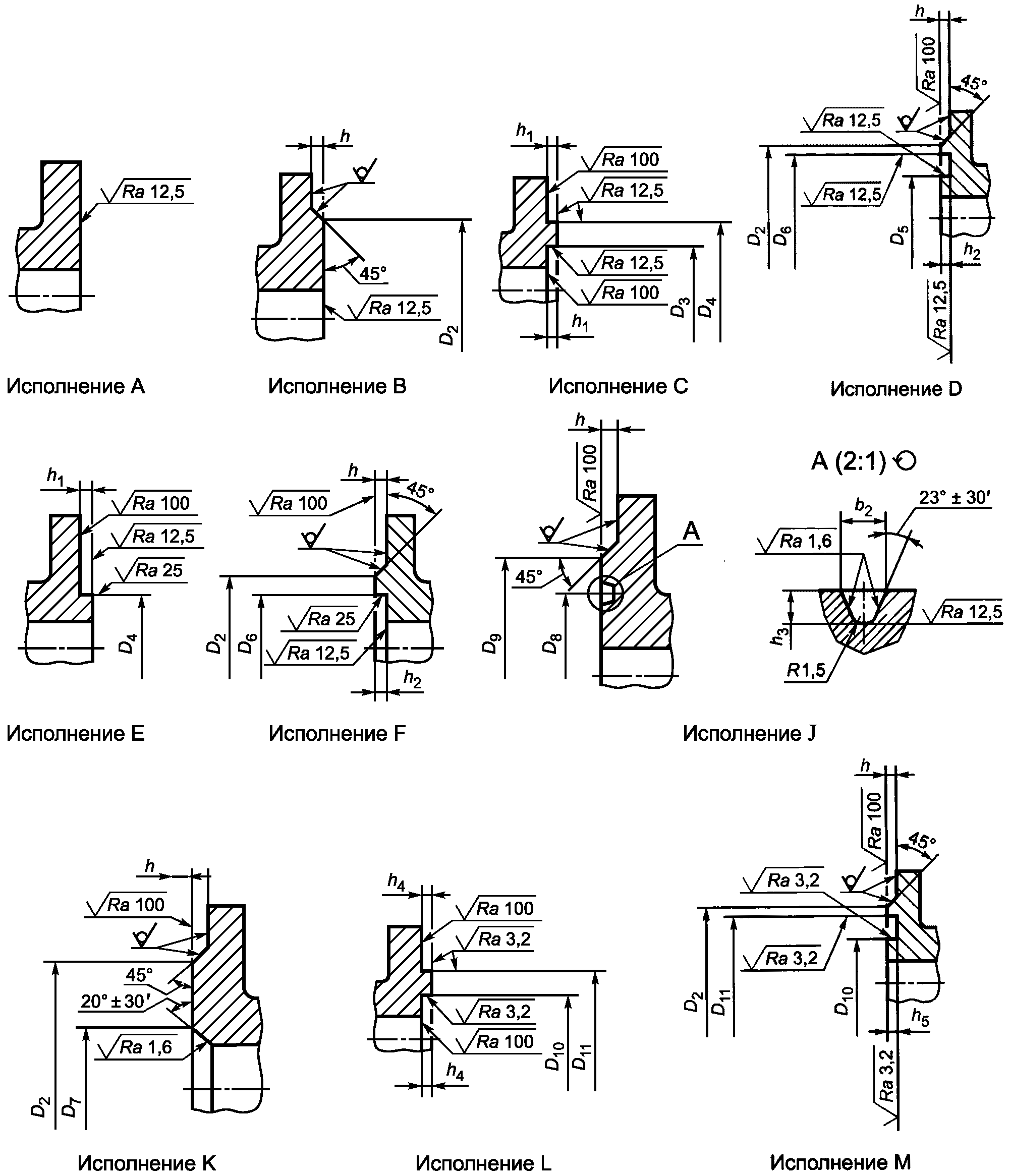 ![]() Фланец под прокладку овального сечения | Исполнение 7 | Исполнение J |