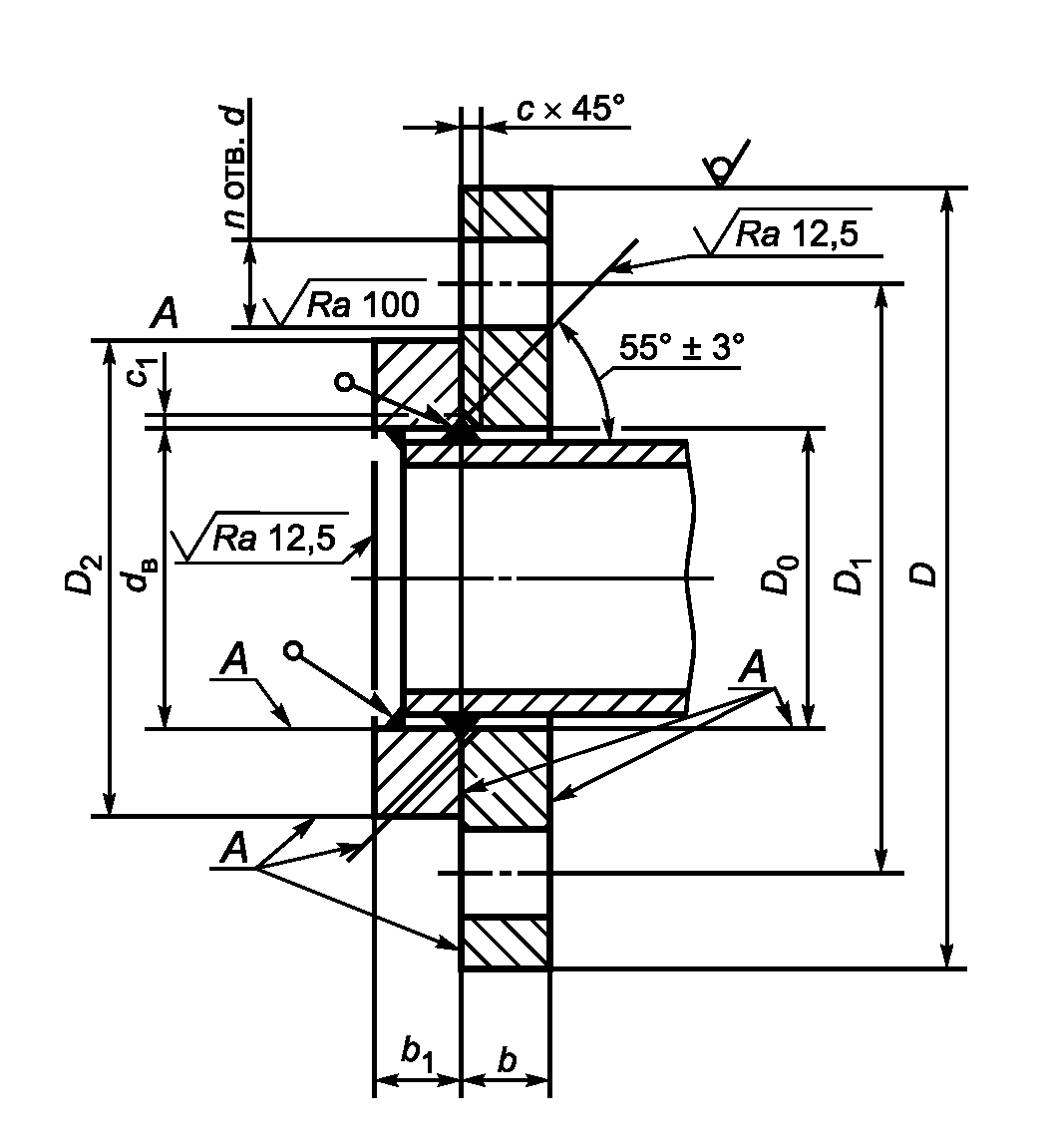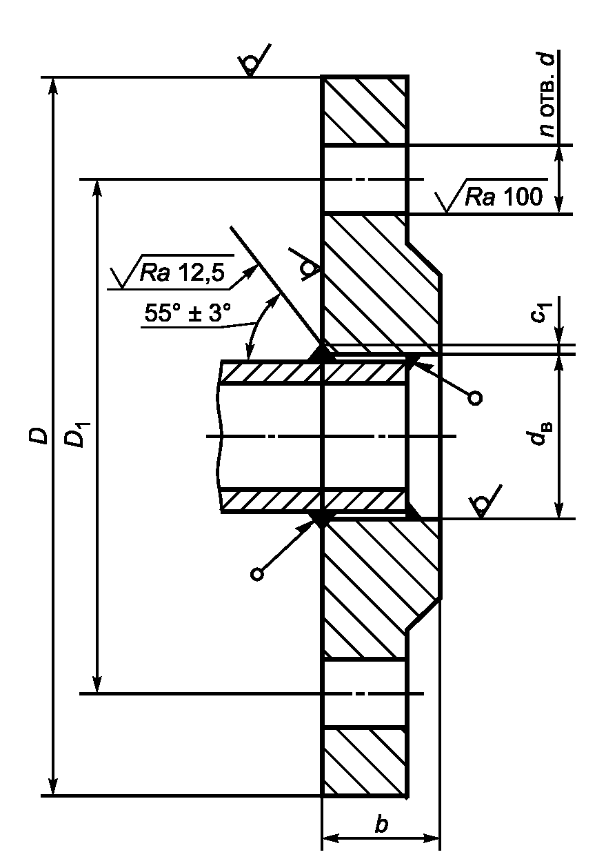 ![]() Фланец с соединительным выступом | Исполнение 1 | Исполнение B |