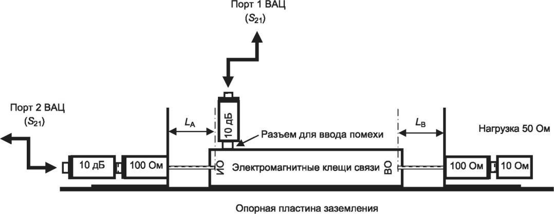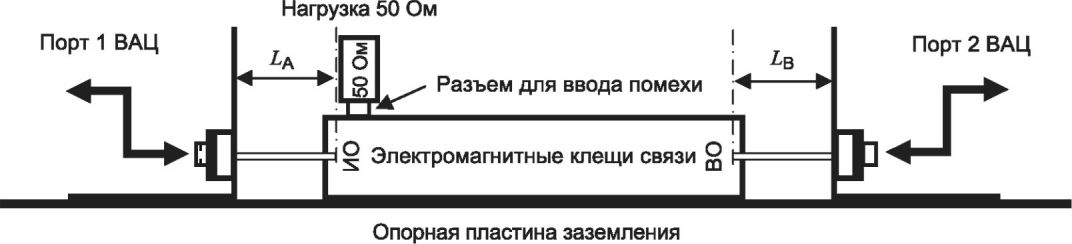 3.4 устройство ввода помехи с применением клещей связи (clamp injection device): Электрическим устройством ввода помехи в кабель (проводник) могут быть либо токовые клещи связи, либо электромагнитные клещи связи.