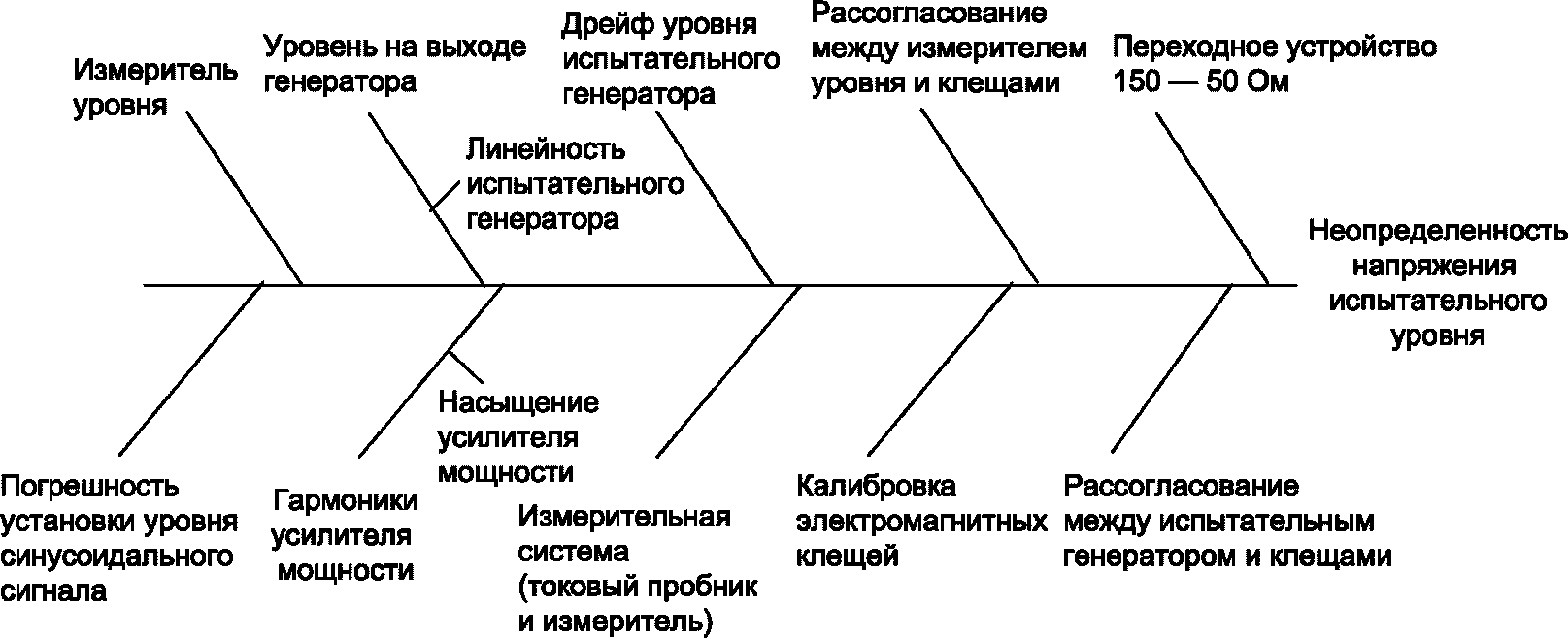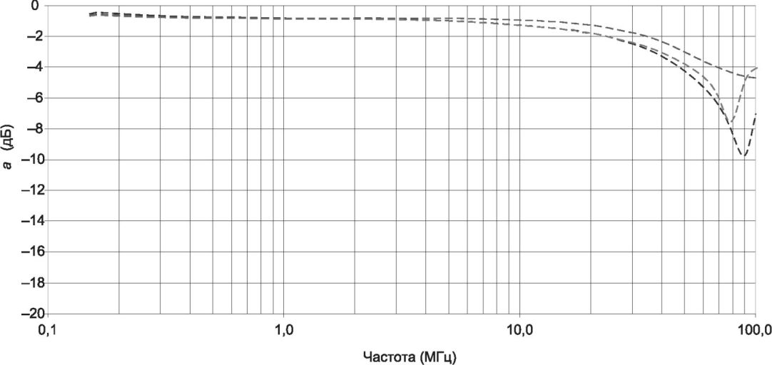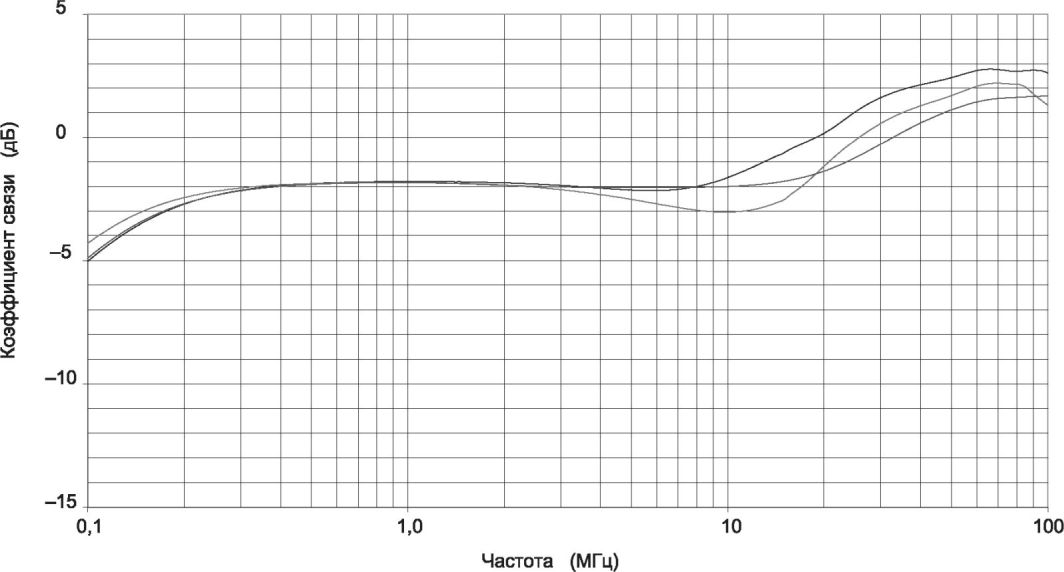 a) Гармоники могут оказывать значительное влияние на измеренные значения, полученные во время калибровки испытательного уровня, так как измеритель мощности будет измерять общую мощность как на основной частоте, так и на частоте гармоник. Например, предположим, что вторая и третья гармоники на 15 дБ ниже основной частоты на входе электромагнитных клещей связи, а всеми остальными гармониками можно пренебречь. Далее, предположим, что коэффициент эффективности электромагнитных клещей связи на частоте третьей гармоники на 5 дБ ниже, чем на основной частоте. Уровень напряжения на основной частоте будет только на 10 дБ больше, чем уровень на третьей гармонике. Если провести измерение на полной амплитуде 10 В, то основная частота может составлять только 9,5 В. Это можно считать за допустимую погрешность, если она меньше, чем неопределенность калибровки электромагнитных клещей связи. Частотно-селективное устройство, такое как анализатор спектра, не будет иметь этой погрешности измерения.