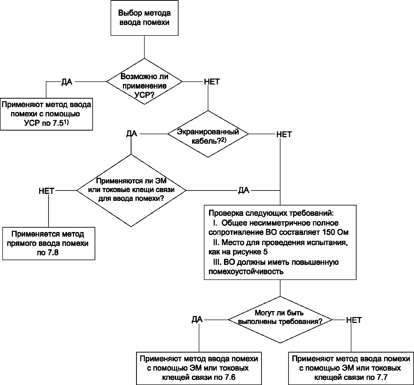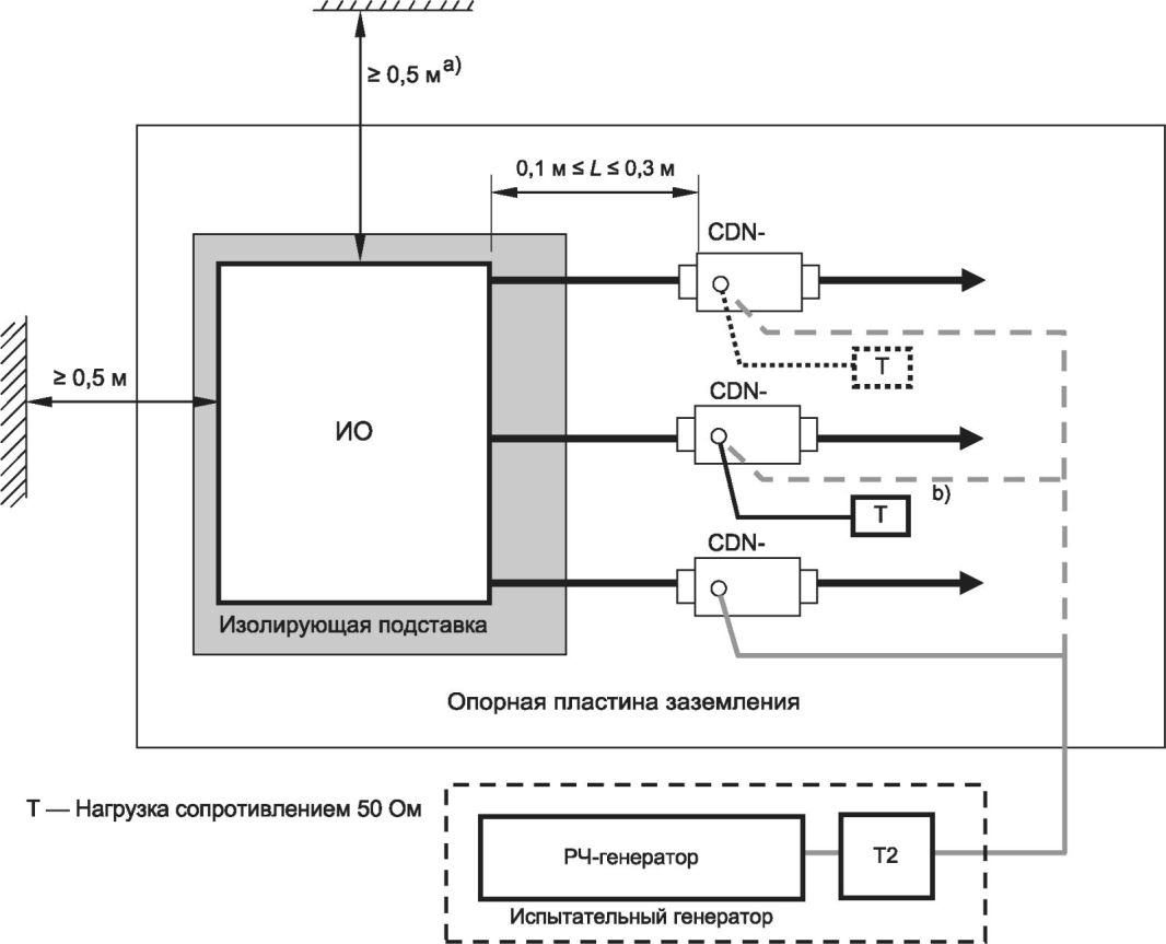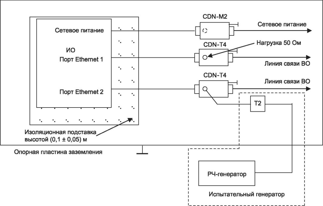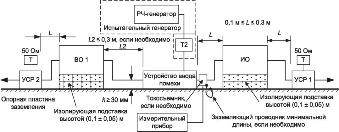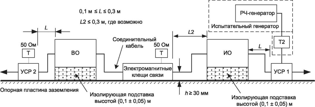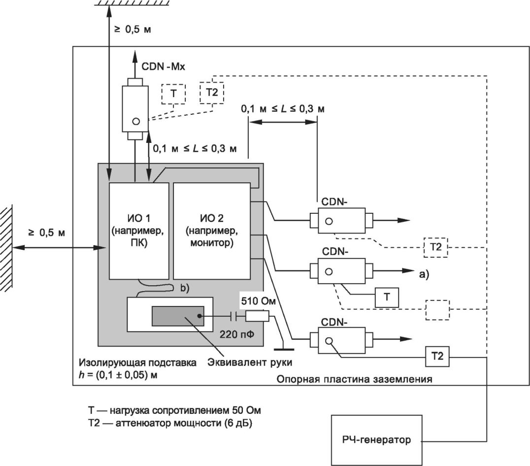 Примечание 1 - Методы испытаний, установленные в настоящем стандарте, применяют для оценки эффектов воздействия на оборудование кондуктивных помех, наведенных электромагнитными полями. Моделирование и измерение таких кондуктивных помех не обеспечивают достаточной точности количественного определения указанных эффектов. Установленные методы испытаний предназначены в первую очередь для обеспечения достаточной воспроизводимости результатов, полученных с использованием различных средств испытаний, с целью количественного анализа эффектов.
