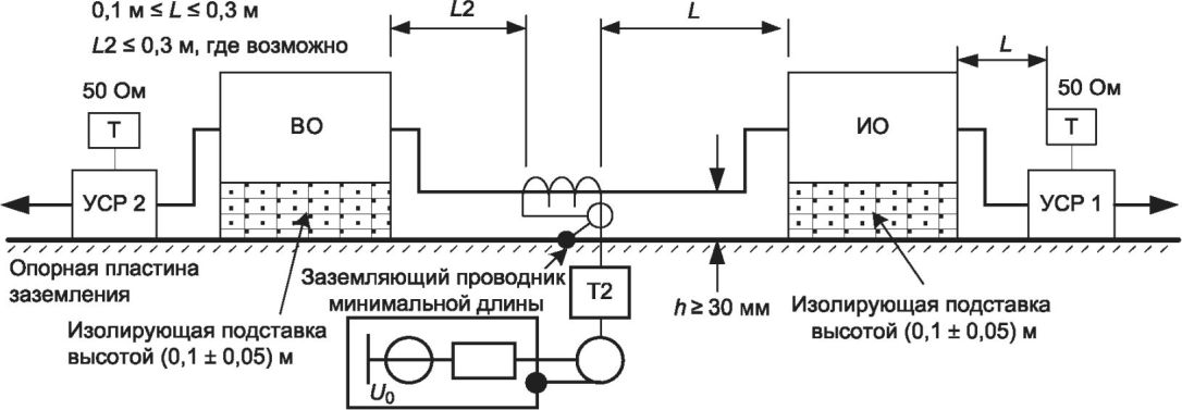 Для оценки линейности усилителя важно использовать фактическую нагрузку и соблюдать условия окружающей среды. В качестве такой нагрузки может быть устройство связи и испытательная система, используемая для проведения испытания ИО. Расположение испытательного оборудования показано на