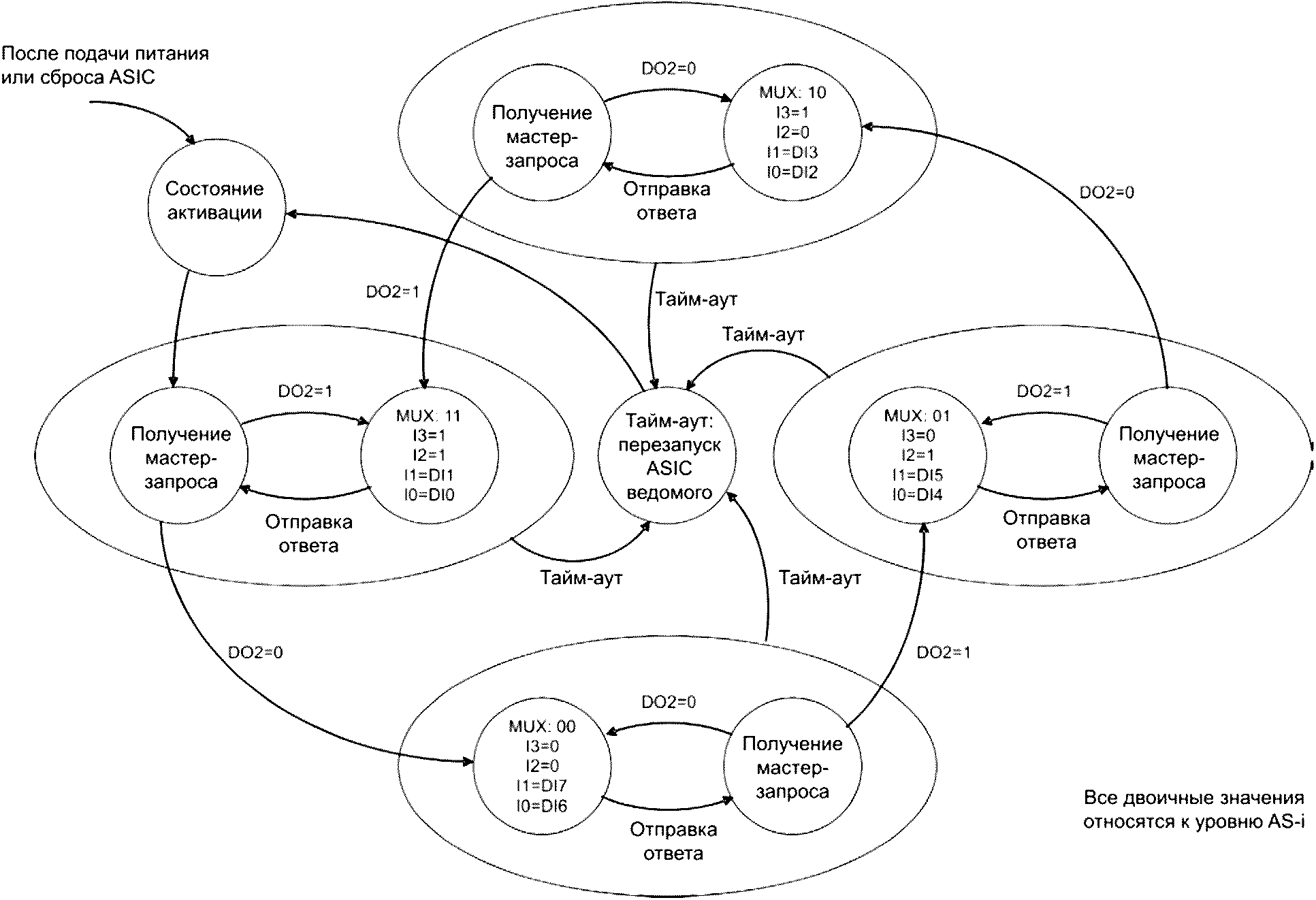 Примечание - Если пара ведомых A и B активирована на одном и том же адресе, то в данном примере они считаются одним ведомым устройством. Доступ к парам A- и B-ведомых осуществляется в каждом втором цикле AS-.