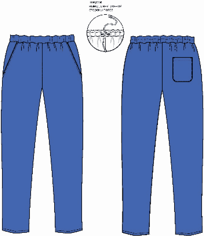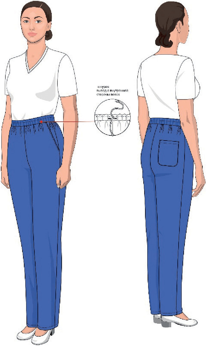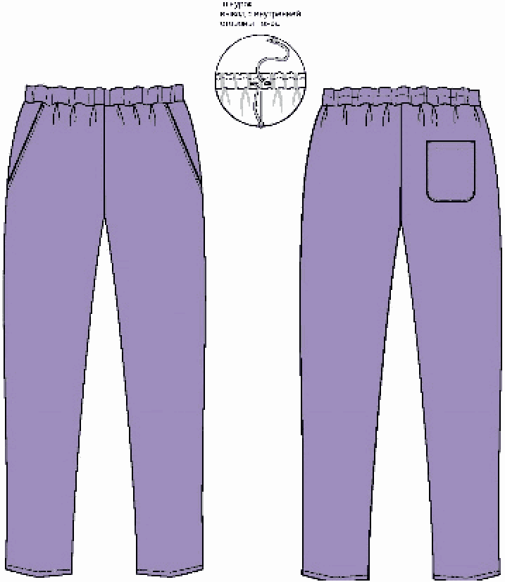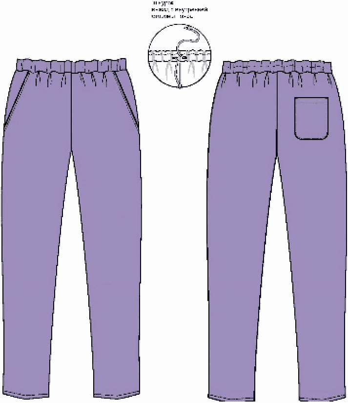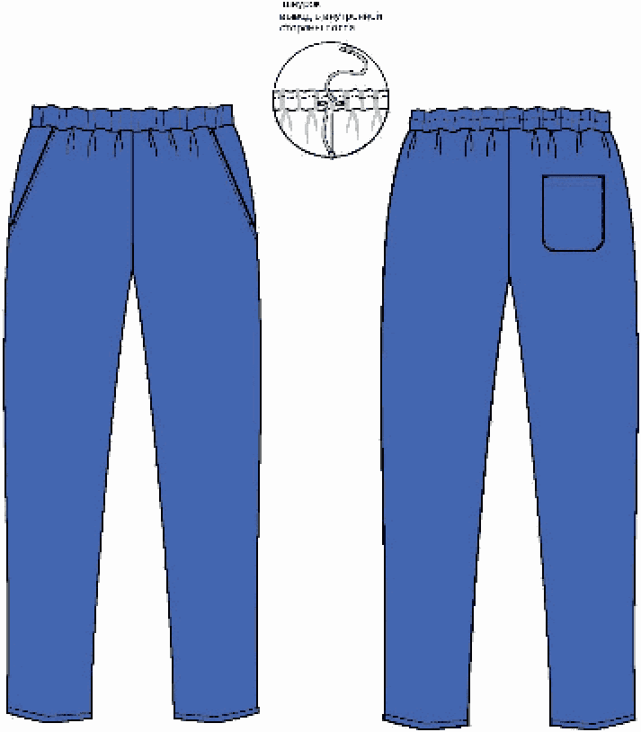6 | Вшивная маркировка: ярлык с указанием размера/роста; ярлык с указанием символов по уходу и состава | | Втачивается в средний шов задних половинок на расстоянии 5,0 - 10,0 см от шва притачивания пояса |