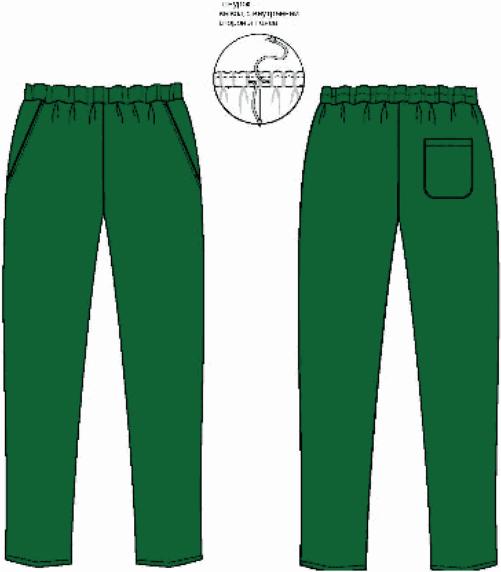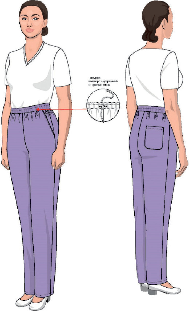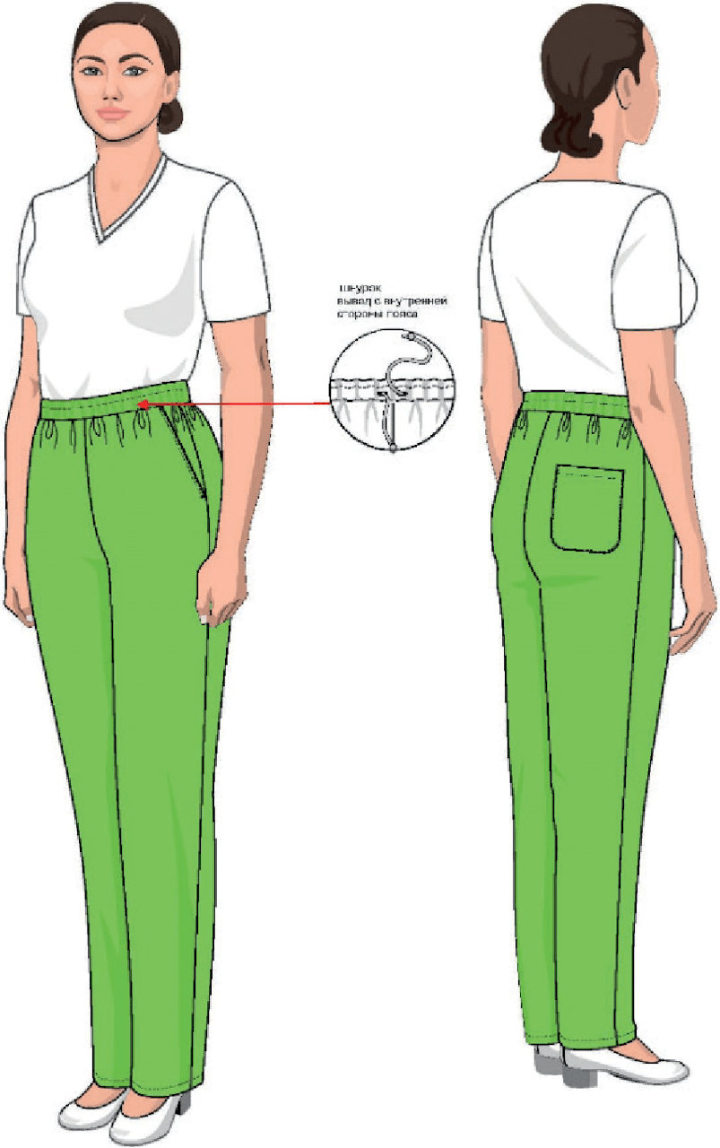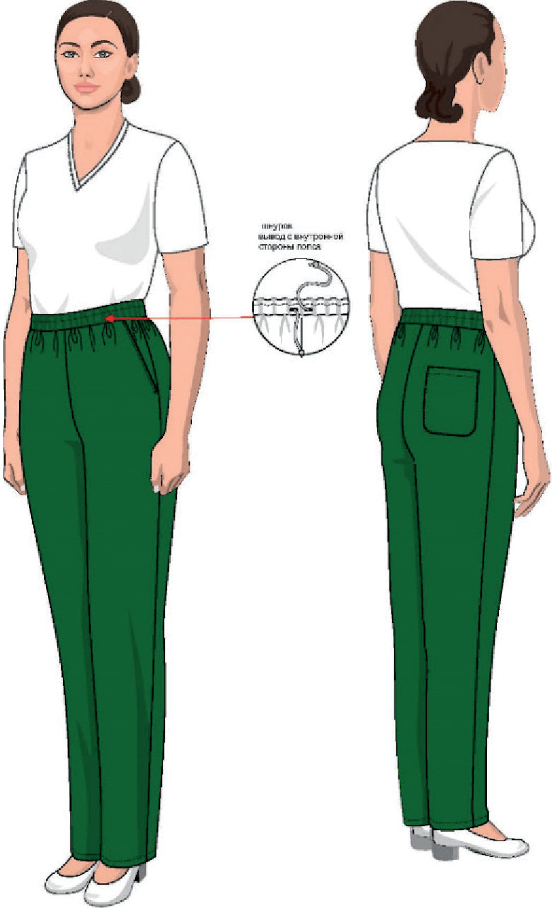 6 | Вшивная маркировка: ярлык с указанием размера/роста; ярлык с указанием символов по уходу и состава | | Втачивается в средний шов задних половинок на расстоянии 5,0 - 10,0 см от шва притачивания пояса |