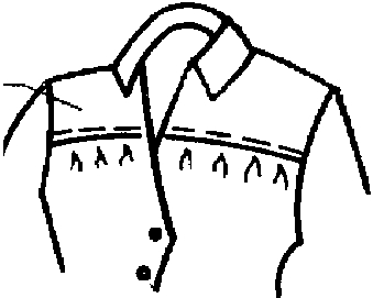 Отложной воротник | | | Деталь изделия для обработки выреза горловины втачанная в горловину полочки и спинки (отгибается в сторону полочки и спинки). |