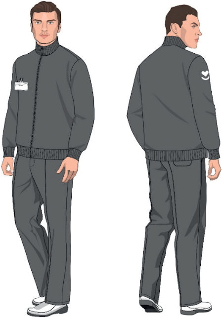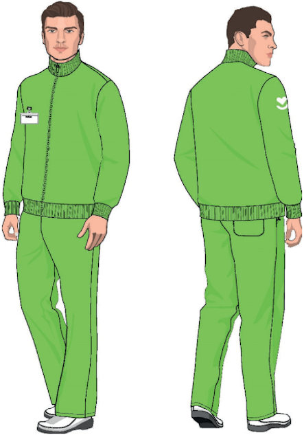 1 | Ткань из натуральных (хлопок) или искусственных (вискозы) волокон не менее 35%, (при наличии эластомерных нитей допустимо уменьшение содержания волокон на 3%); Отделка: антибактериальная; Вес: 200 - 240 г/м2. | НТД производителя | Для основных деталей изделия |