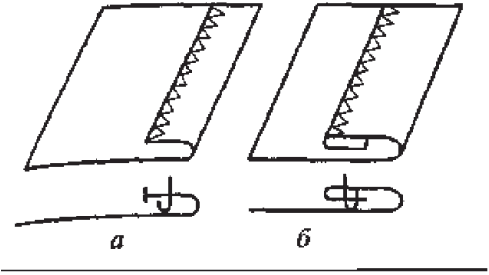 Обработка детали с обметанным срезом | | | Краевой шов, применяющийся для обработки краев деталей путем подгибки детали с одновременным обметывания срезов. |