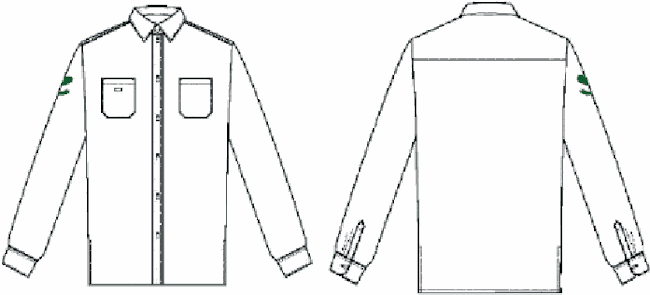 4 | Пуговица пластиковая,  ; количество проколов - 2, устойчивая к воздействию ВТО (160 +/- 5 °C) и химчистке; цвет: в тон основной ткани | ГОСТ 29150-91 | Для центральной застежки и манжет |