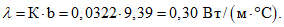 Коэффициент теплопроводности  | Вт/(м2·К) | 0,26 ... 0,36 | 0,28 ... 0,39 | 0,31 ... 0,42 | 0,34 ... 0,45 | 0,36 ... 0,47 |