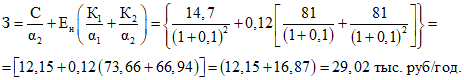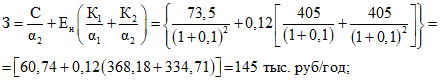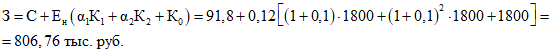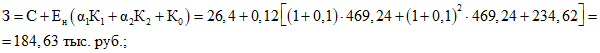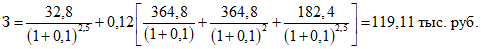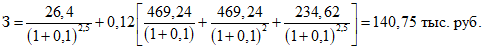 З = 32,8 + 0,12 [(1 + 0,1)·364,8 + (1 + 0,1)2·364,8 + 182,4] = 155,81 тыс. руб.;