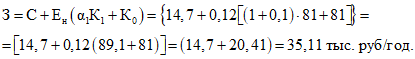 С - текущие издержки (эксплуатационные расходы), тыс. руб/год.