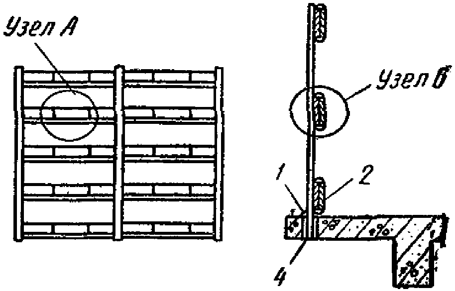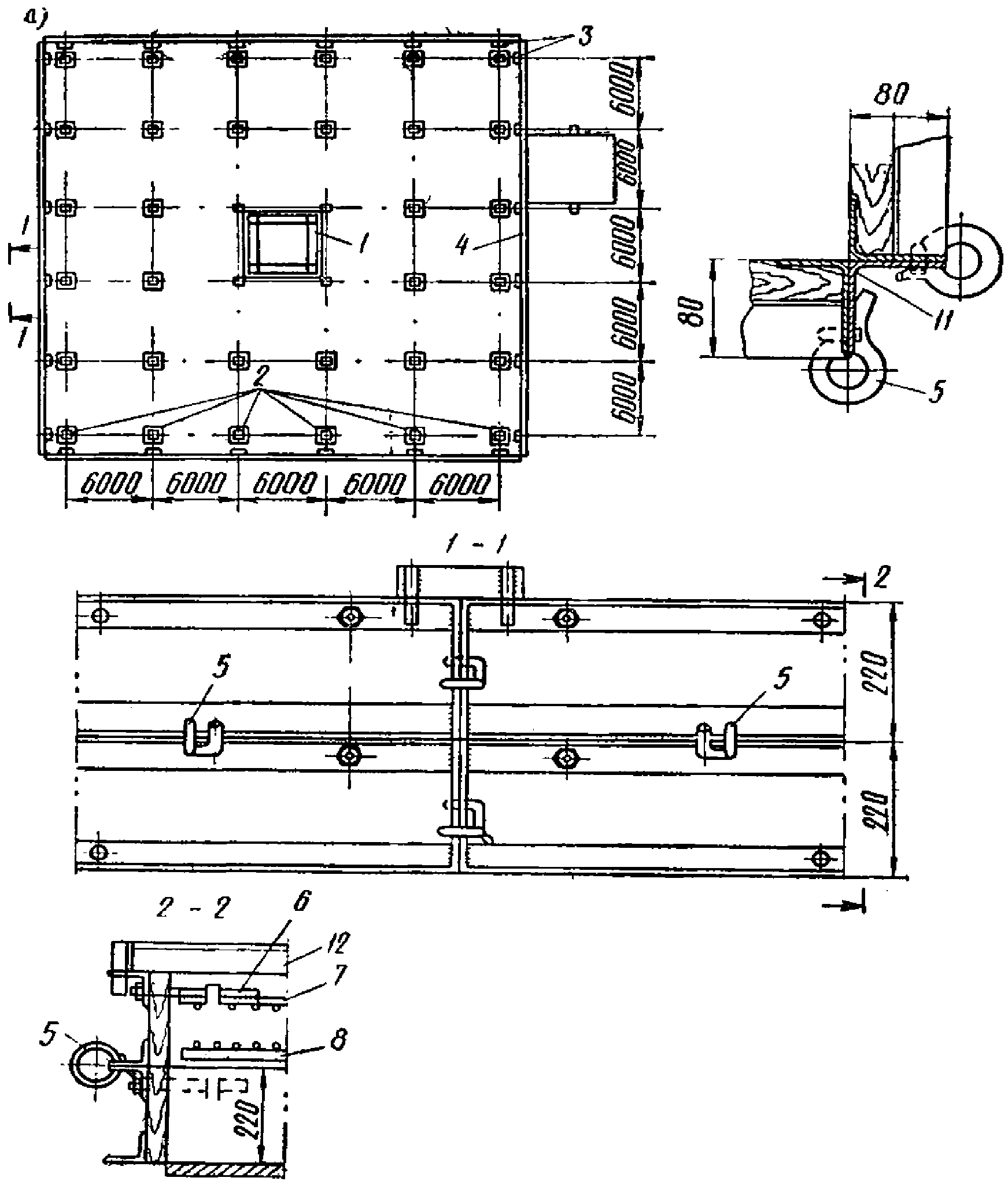 ж) для опирания в перекрытия замоноличиваются заранее изготовленные стальные или железобетонные "воротники" с закладными деталями для соединения с колоннами. К воротникам крепятся также грузовые тяги подъемников;