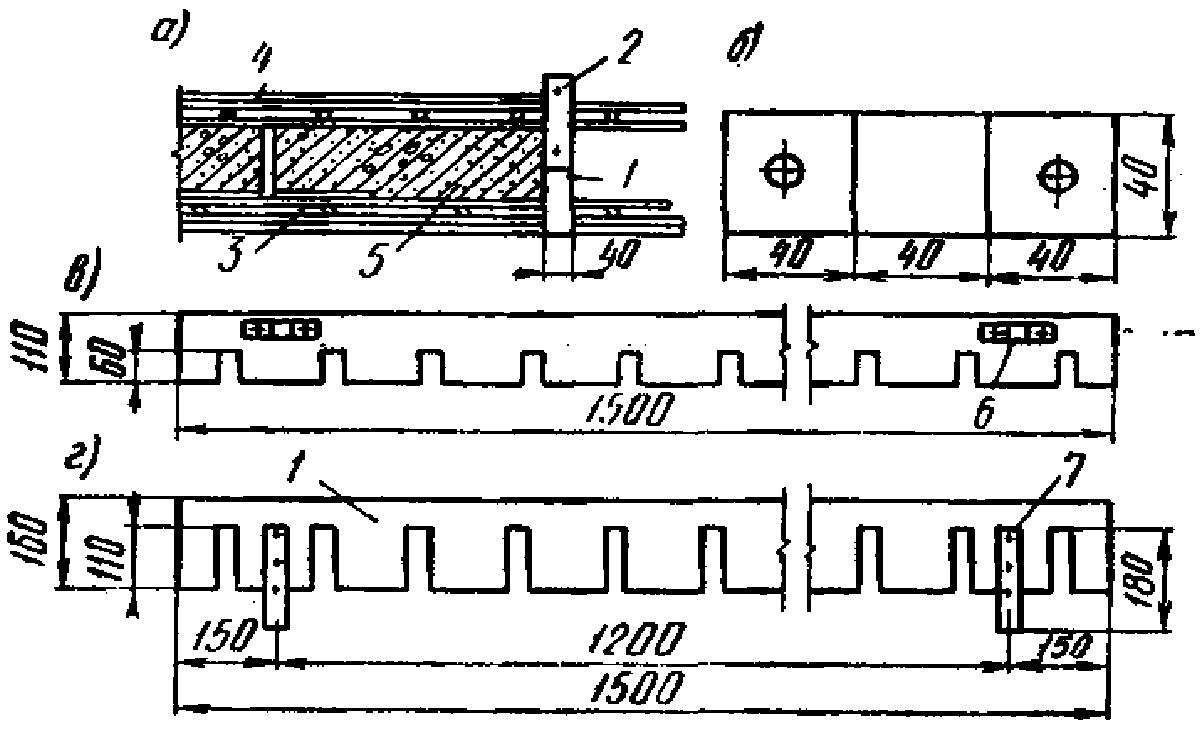 з) плиты армируются в основном плоскими сварными сетками и каркасами, стыкуемыми между собой внахлестку без сварки. В опорной зоне плит часть рабочей арматуры сеток (или каркасов) приваривается к воротникам или арматурным выпускам из них;