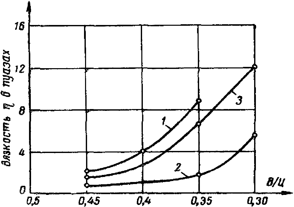 Большое влияние на вязкость раствора оказывает нормальная густота цементного теста. Вязкость растворов, приготовленных на портландцементах с разной нормальной густотой цементного теста при одном и том же В/Ц, может быть различной.