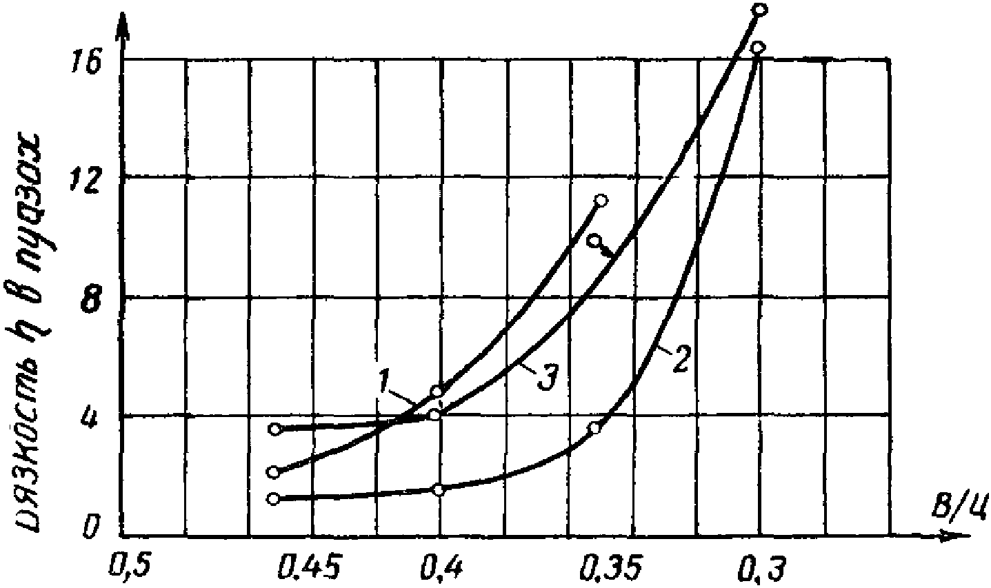 Вязкость: 1 - 1,9 пуаза; 2 - 2,2 пуаза; 3 - 2,6 пуаза;