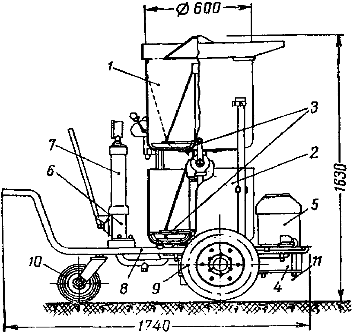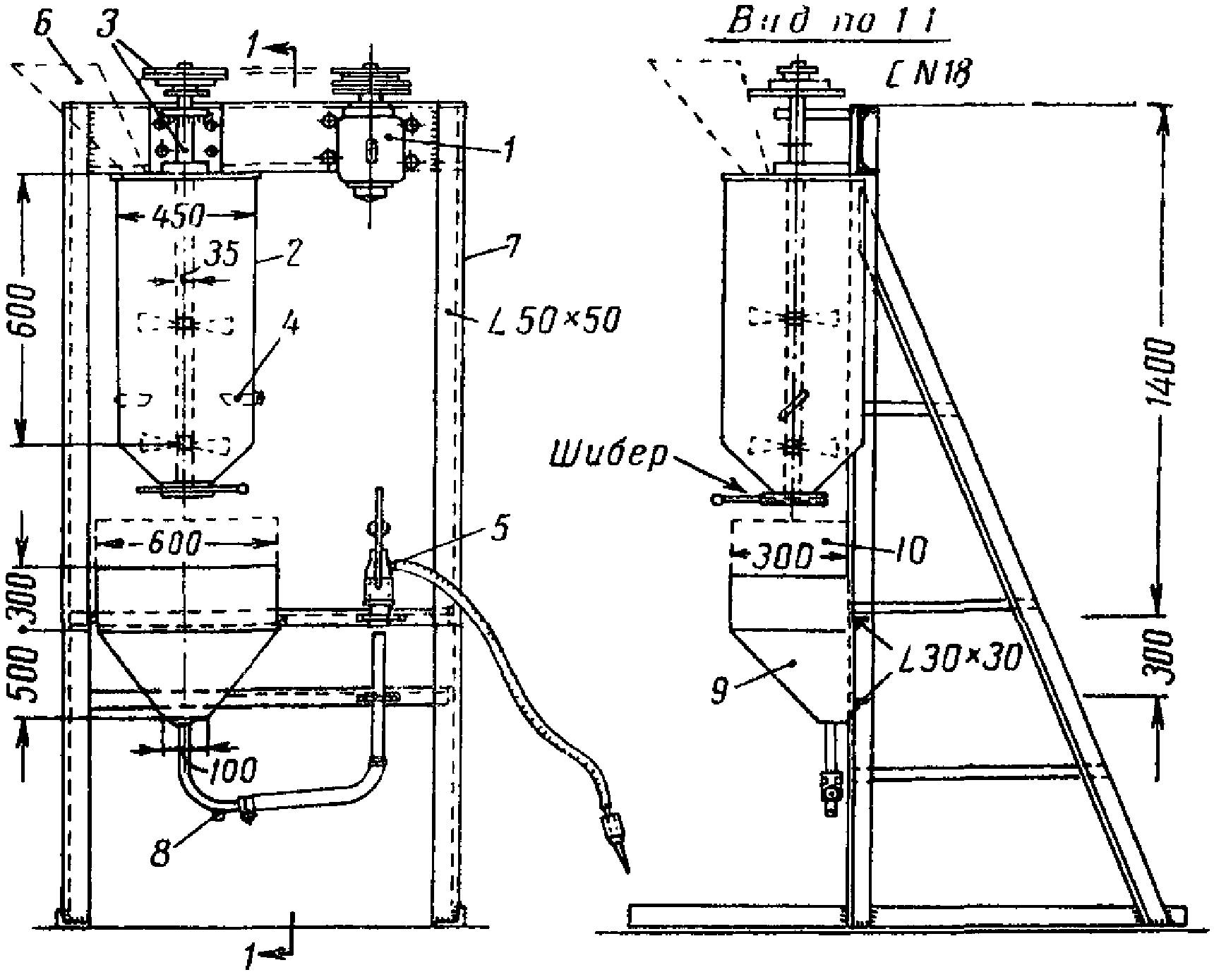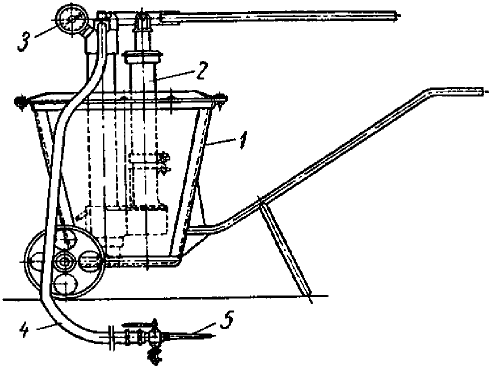 1 - бункер; 2 - насос; 3 - манометр;