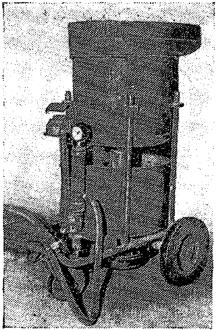 Для нагнетания инъекционного раствора может применяться механический растворонасос типа С-251, используемый обычно для подачи штукатурного раствора. Он также снабжается манометром и специальным колпаком для равномерной подачи раствора. Его производительность - 1 м3 в час (рис. 16). Большая производительность его не может быть использована. Перекрывая регулировочным клапаном отверстие, через которое раствор с помощью шланга подается в канал, достигается подача нужного количества раствора. Насос засасывает большее количество раствора, чем то, которое нужно подать в канал, а избыточное его количество сбрасывается обратно в бункер. Благодаря такой непрерывной циркуляции раствор не оседает и его качество не ухудшается.
