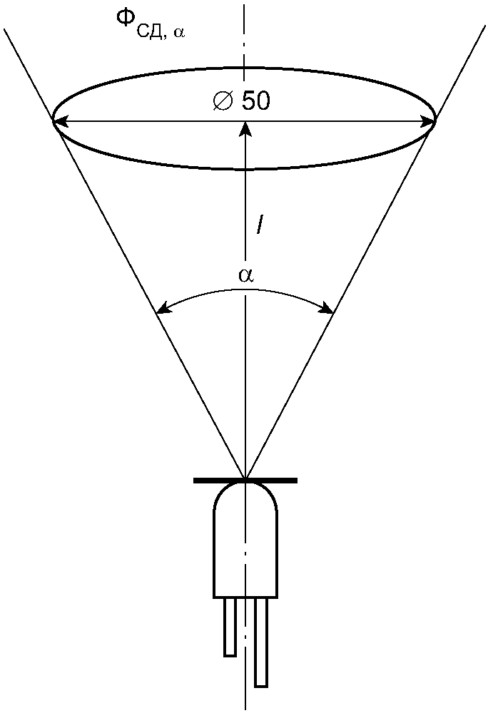 3.8 средняя сила света светодиода; средняя сила света СД: Усредненная освещенность по круглой апертуре площадью 100 мм2, которая установлена перпендикулярно к механической оси СД на расстоянии 316 мм для стандартного условия МКО A или 100 мм для стандартного условия МКО B, при этом расстояние измеряют от вершины оптической части корпуса СД, а усредненную освещенность умножают на квадрат расстояния и делят на телесный угол.