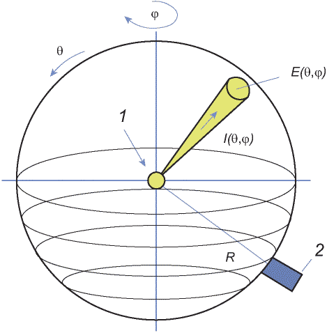 3.3 пространственное распределение силы света: Значения силы света ИС в зависимости от направления в пространстве, представляемые с помощью кривых или таблиц.