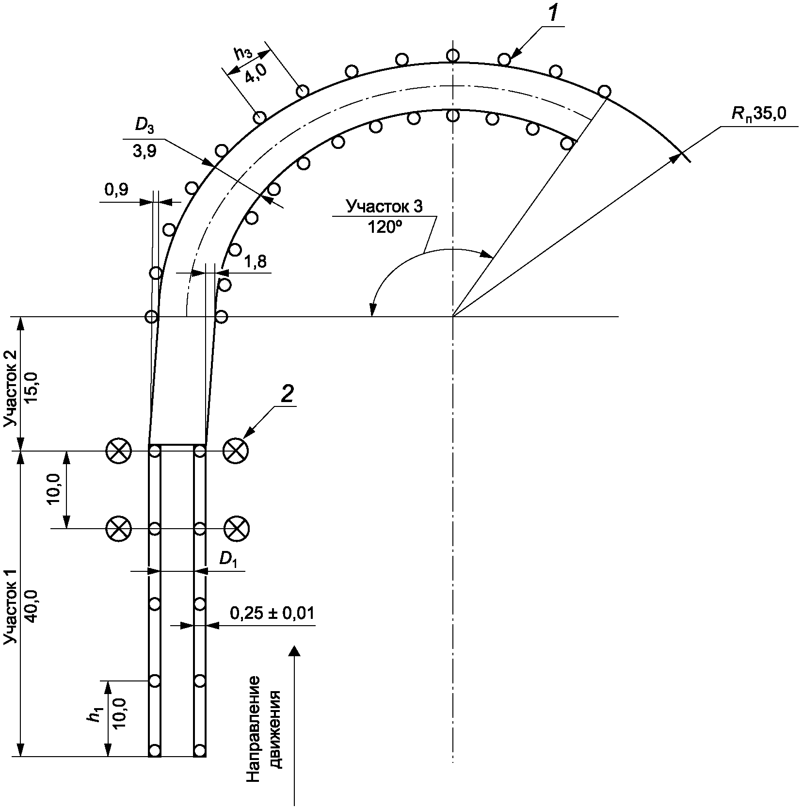 Д.5.1 Испытания при выполнении маневра "поворот Rп = 35 м" ("поворот Rп = 25 м")