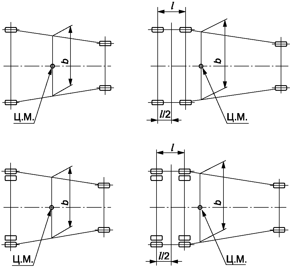 3.9 база автомобильного транспортного средства: Расстояние между центрами колес осей при максимальной массе АТС (для полуприцепа - расстояние между осью шкворня и первой от шкворня осью).