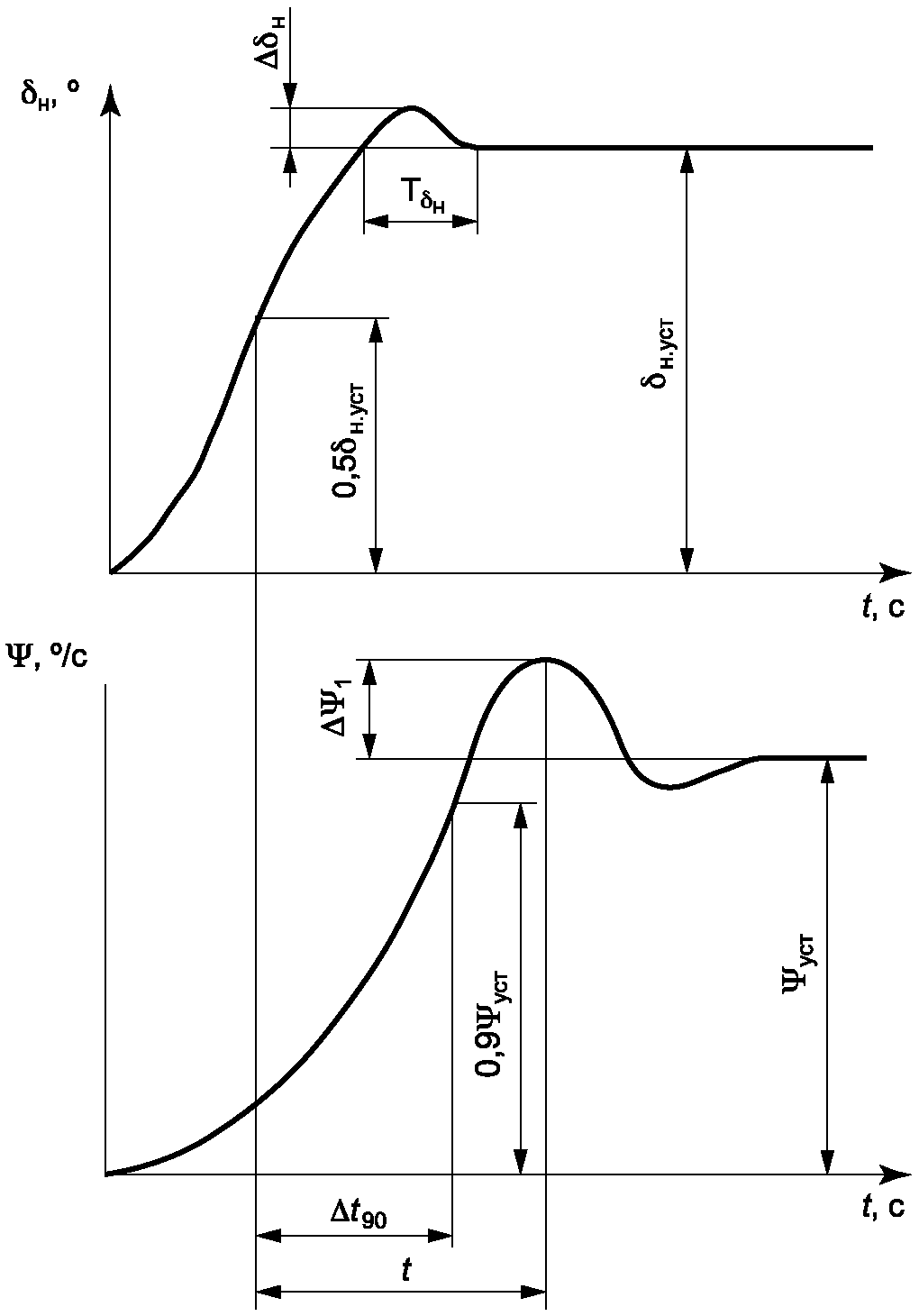 Время 90%-ной реакции по угловой скорости, с | | | | |