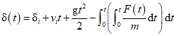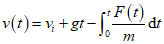 9.2 Если копер оборудован аппаратурой по считыванию контактной силы, возможно получить уравнение зависимости скорости, перемещения и поглощенной энергии от времени t:
