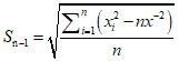 Стандартное отклонение Sn-1 вычисляют по формуле