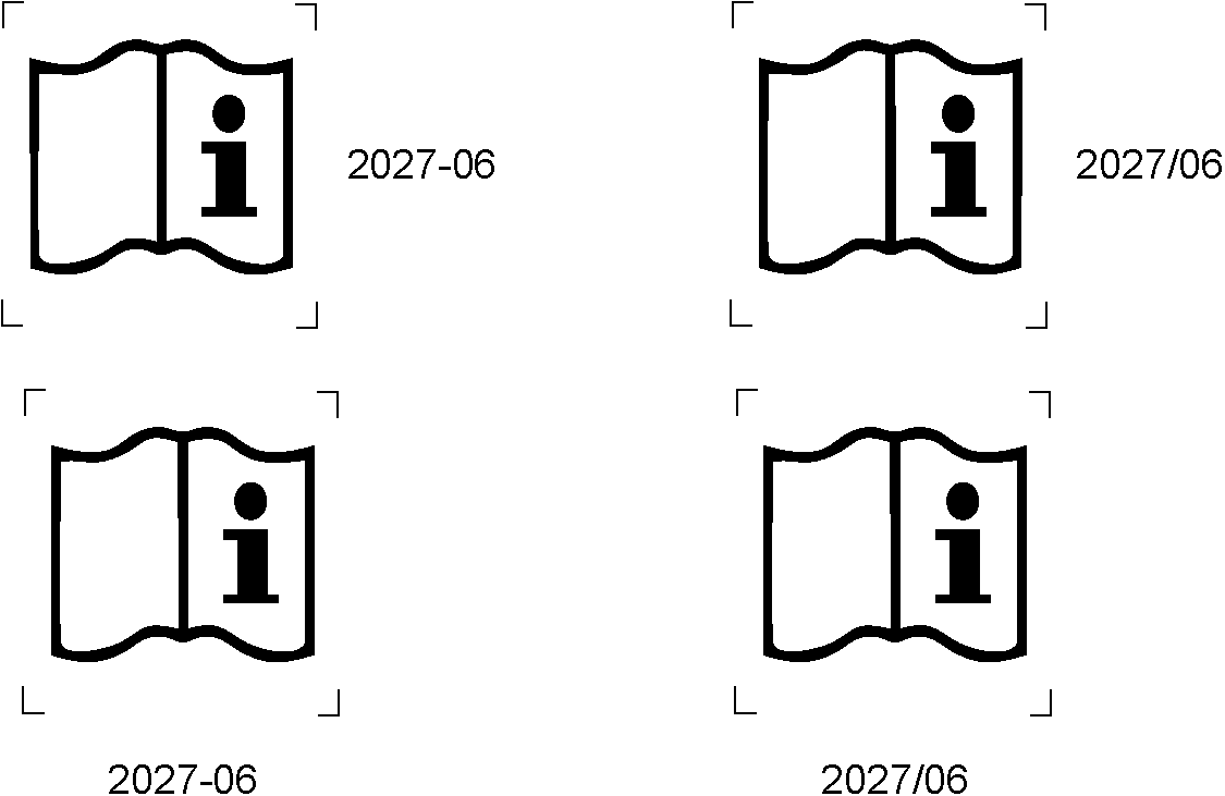 | Дата истечения срока годности Рядом с пиктограммой должна быть указана дата, которая обозначает, что специальная обувь не должна применяться после указанного года-месяца |