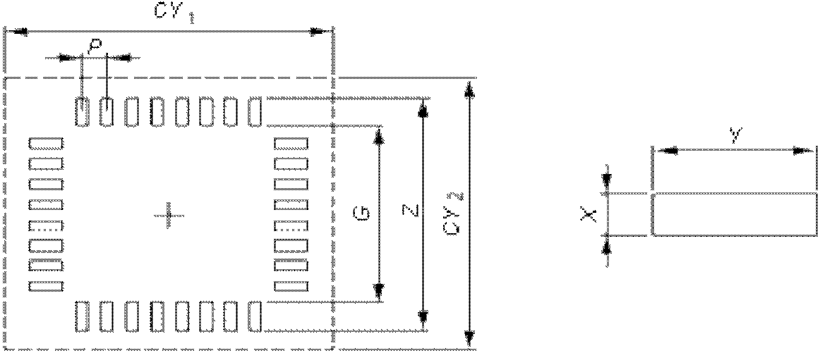 CL - погрешность длины корпуса (по носкам рядов выводов); CS - погрешность расстояния между рядами выводов корпуса; CW - погрешность ширины вывода. Примечание - Корпусы PQFP с шагом выводов менее 0,65 мм не предназначены для пайки расплавленным припоем. | |||||||||||||||
