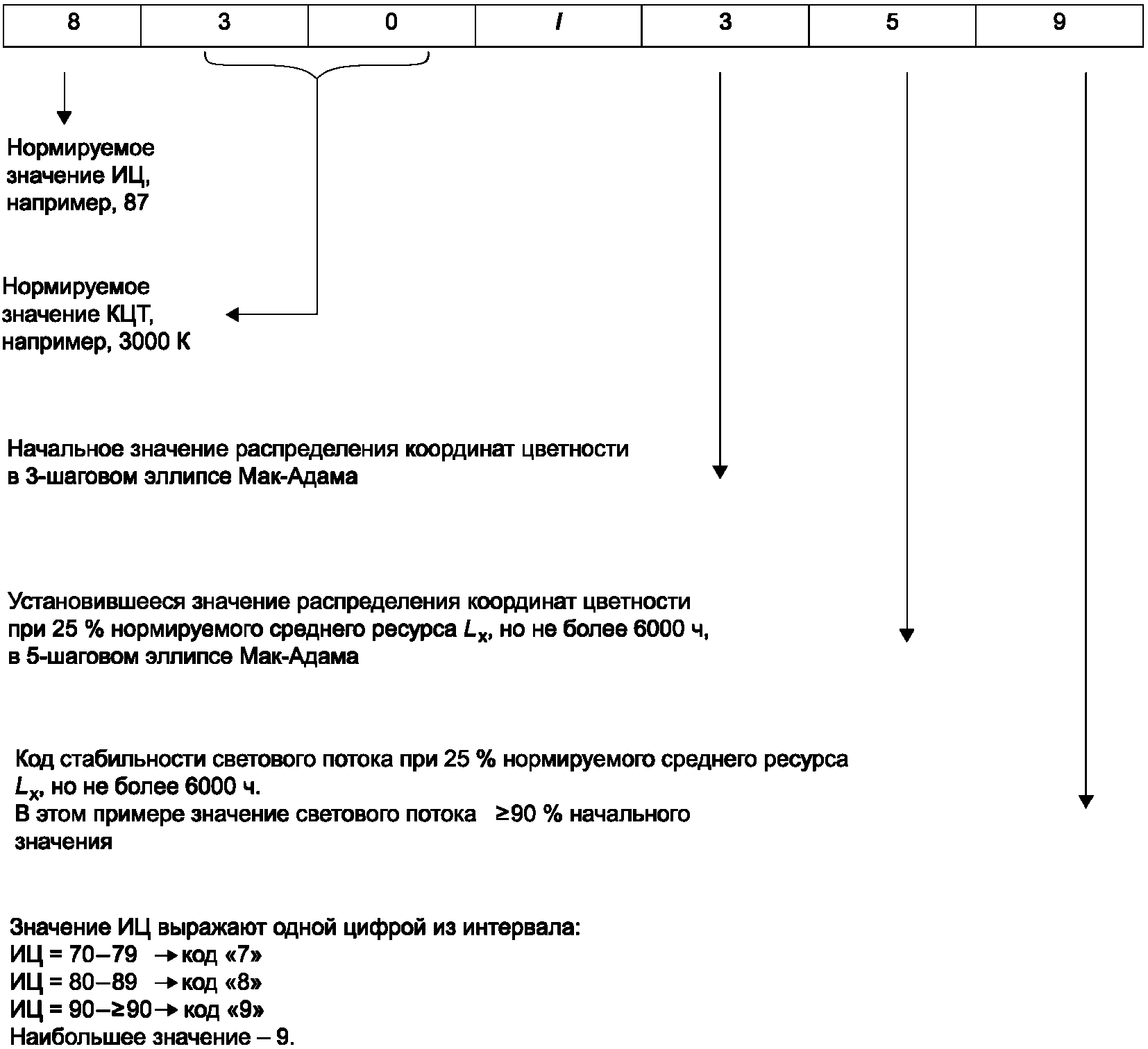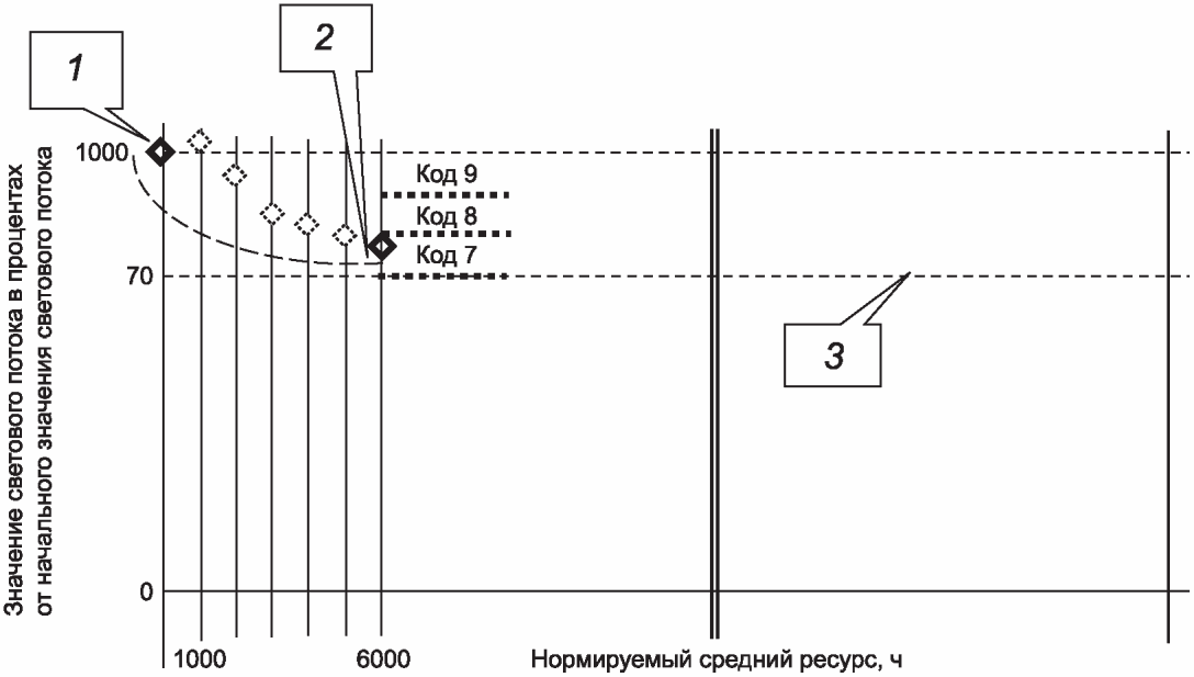 СД модули, выдержавшие испытания по 10.2 длительностью по I.2.1, должны соответствовать требованиям к коду стабильности светового потока, заявленному изготовителем или ответственным поставщиком, в соответствии с таблицей 6.