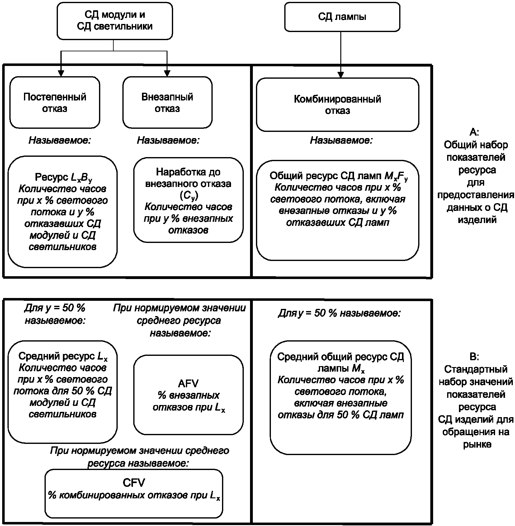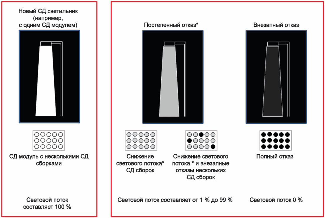 В настоящем стандарте в испытаниях на ресурс установлены методы определения коэффициента стабильности светового потока, определяемые по результатам испытаний заданной длительности. При этом коэффициент стабильности светового потока не указывает на возможный ресурс СД модуля. Эти коэффициенты предназначены для подтверждения соответствия заявленной изготовителем стабильности светового потока СД светильника до начала испытаний.