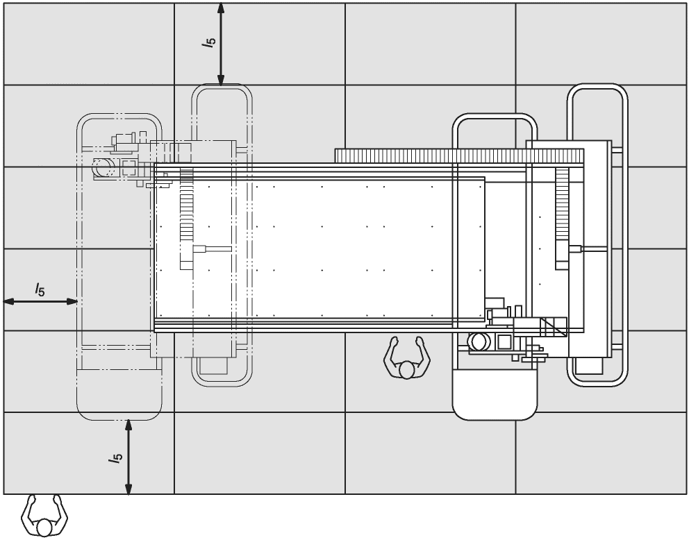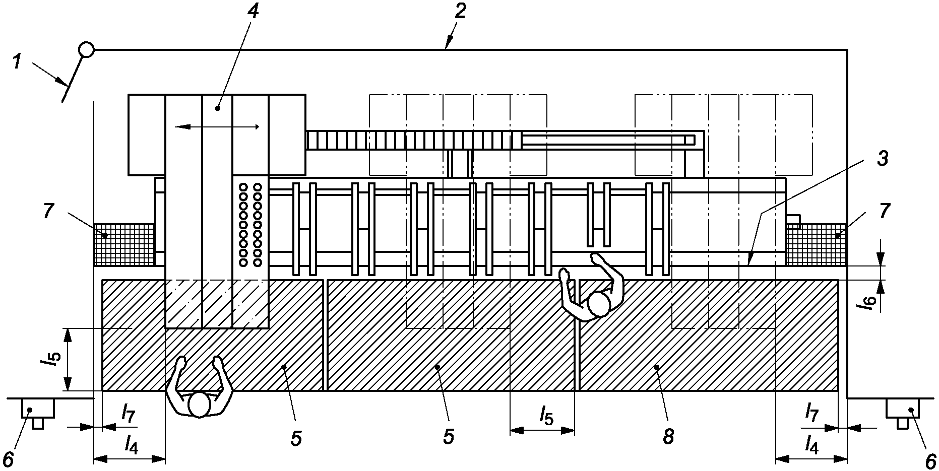 a) если завеса может быть поднята - 40 000 контактов каждой сторон завесы с соответствующим краем заготовки при максимальной скорости обработки. При использовании нескольких заготовок, расположенных параллельно друг другу, их расстояние должно быть не менее чем в два раза больше высоты завесы, или